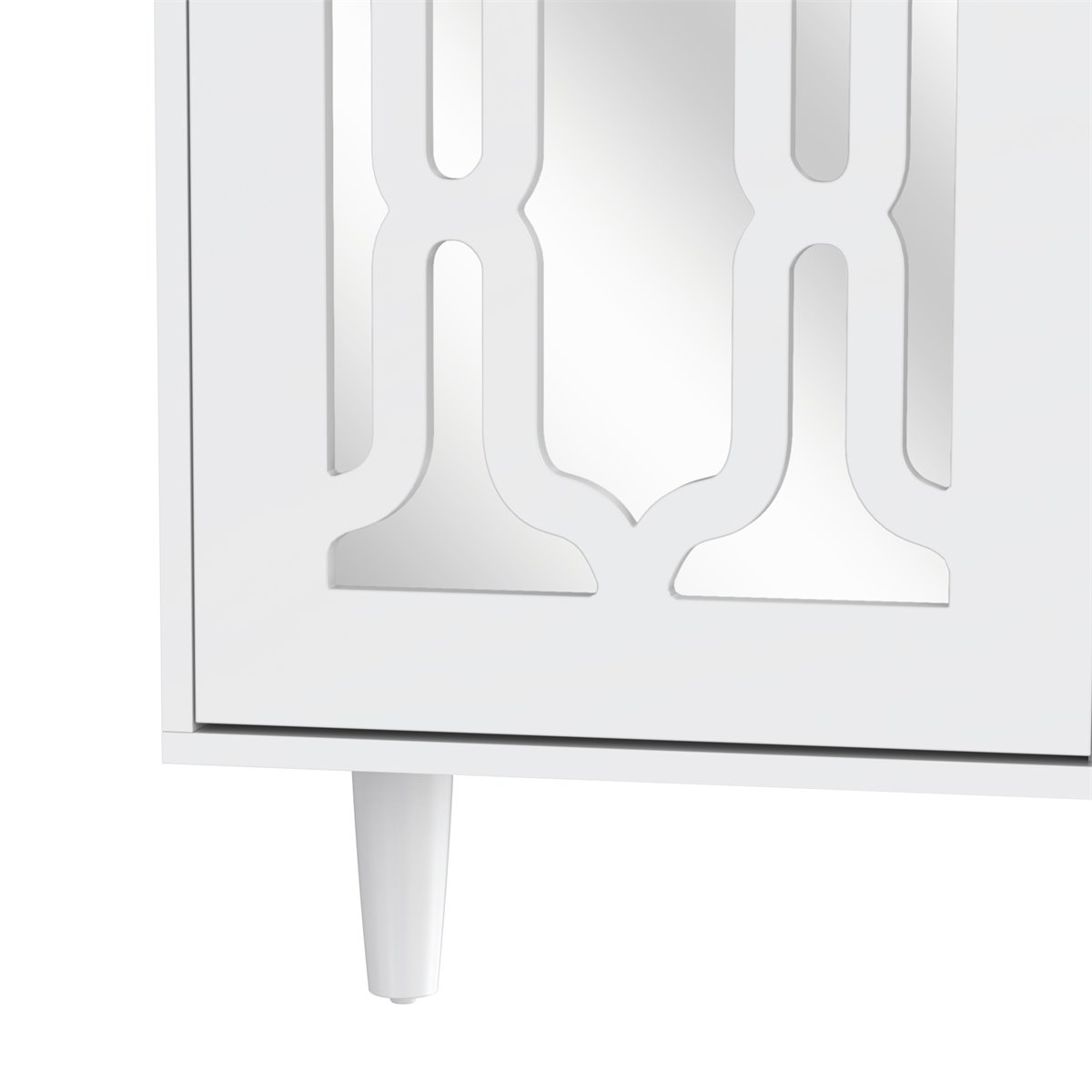 Con puertas de espejo transparente y decorada con líneas elegantes, esta fantástica pieza Este mueble se convertirá en un mueble atemporal en su hogar.