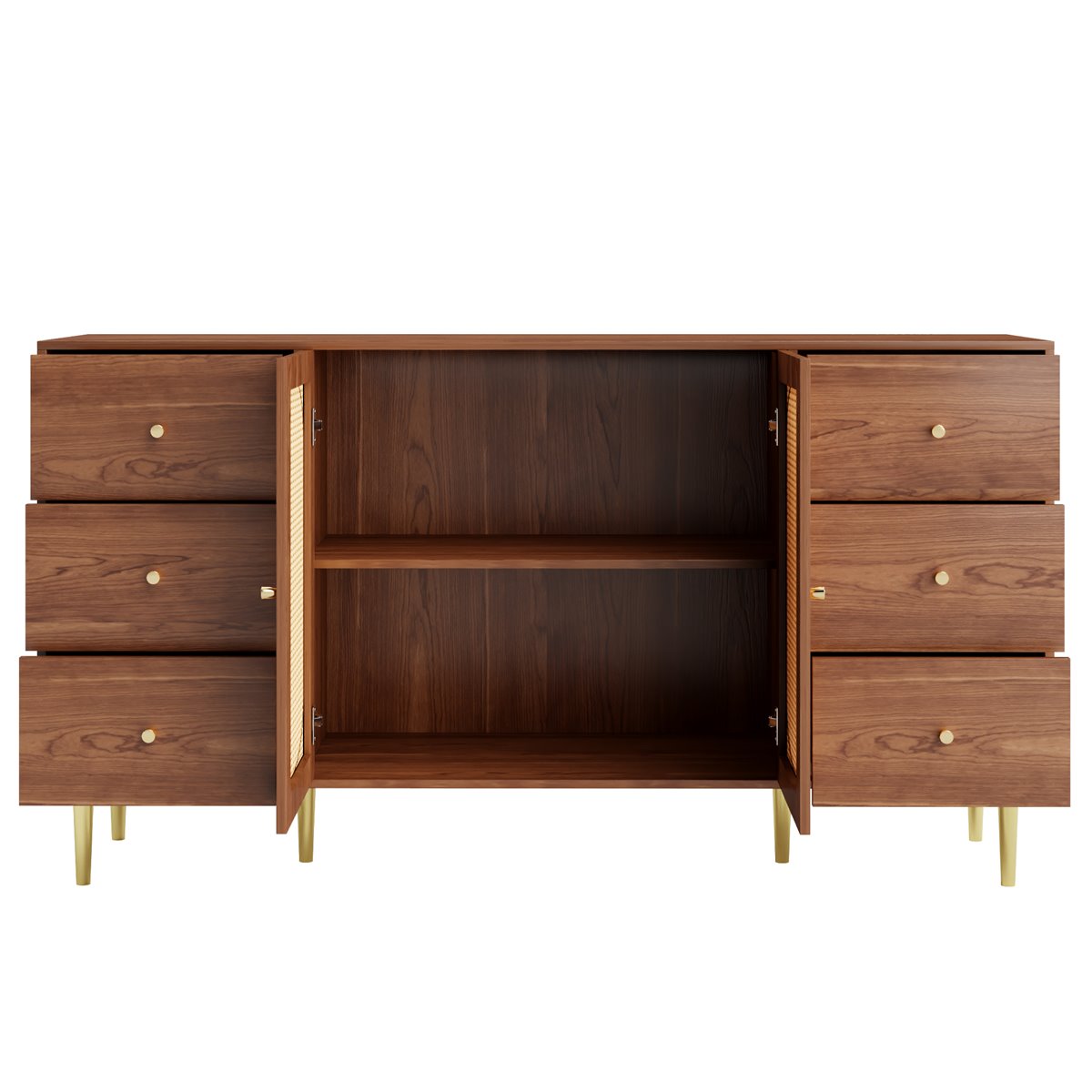 Este mueble cuenta con seis cajones y dos puertas, creando un amplio espacio de almacenamiento, haciendo que el orden sea más amigable y utilizando el espacio de manera más eficiente. Puede usarse no solo como buffet en la cocina o el comedor, sino también como mueble para TV, consola, biblioteca, bodega, etc.