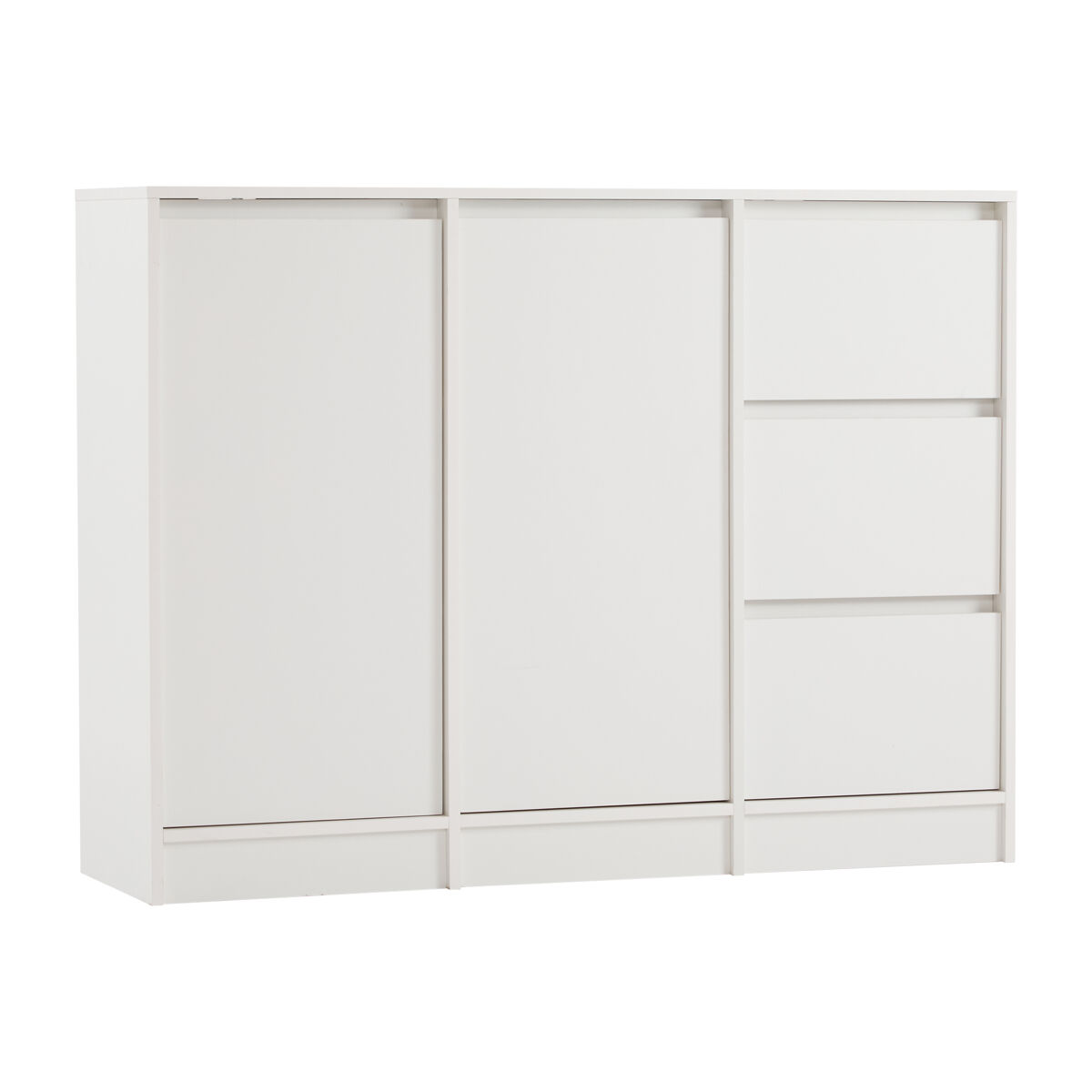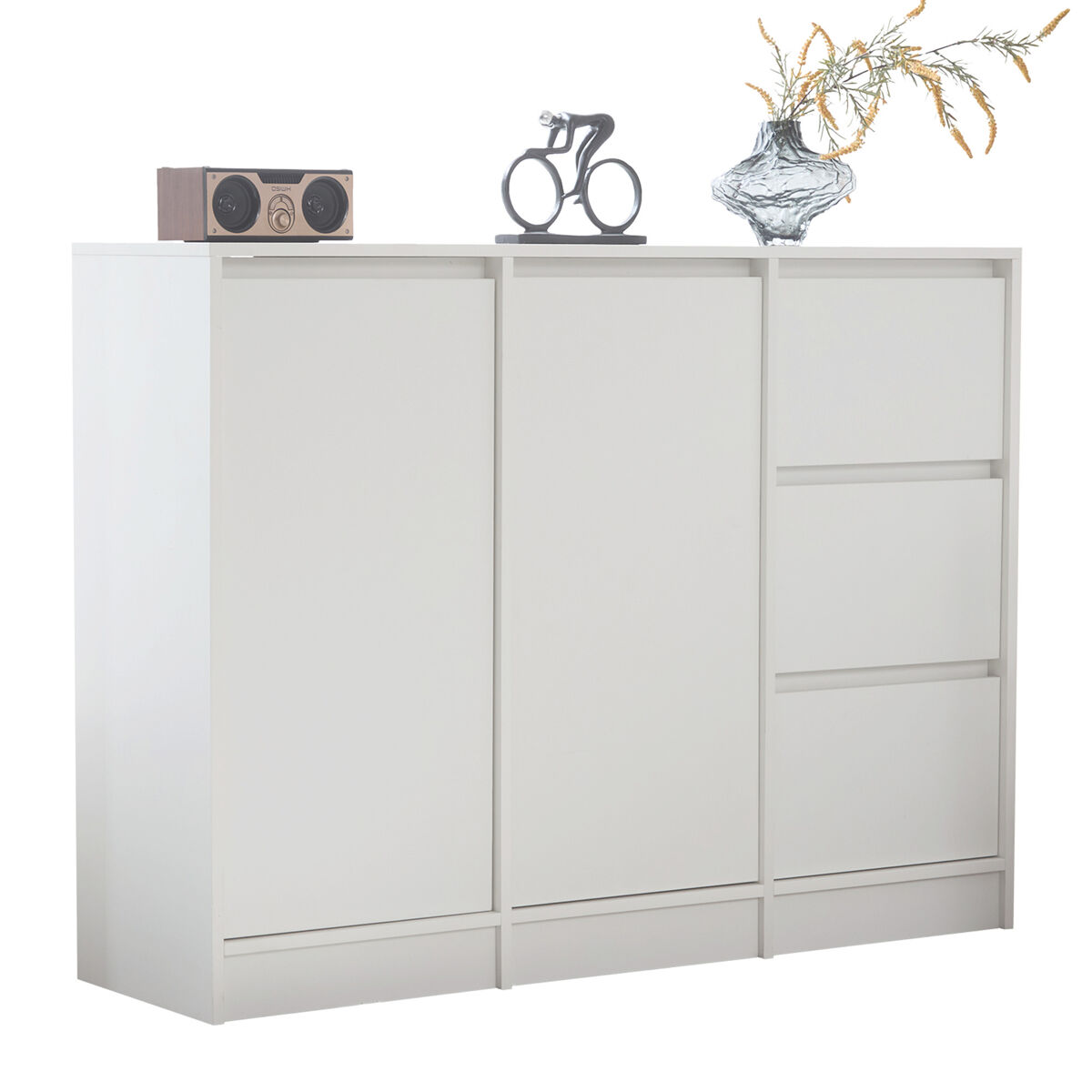 Los armarios están equipados con herrajes y paneles de partículas de alta calidad. La bisagra tiene una función de amortiguación para evitar pellizcar los dedos al abrir y cerrar. El kit anti-vuelco incluido se fija de manera segura a la pared para ofrecer una estabilidad adicional y un uso sin preocupaciones.