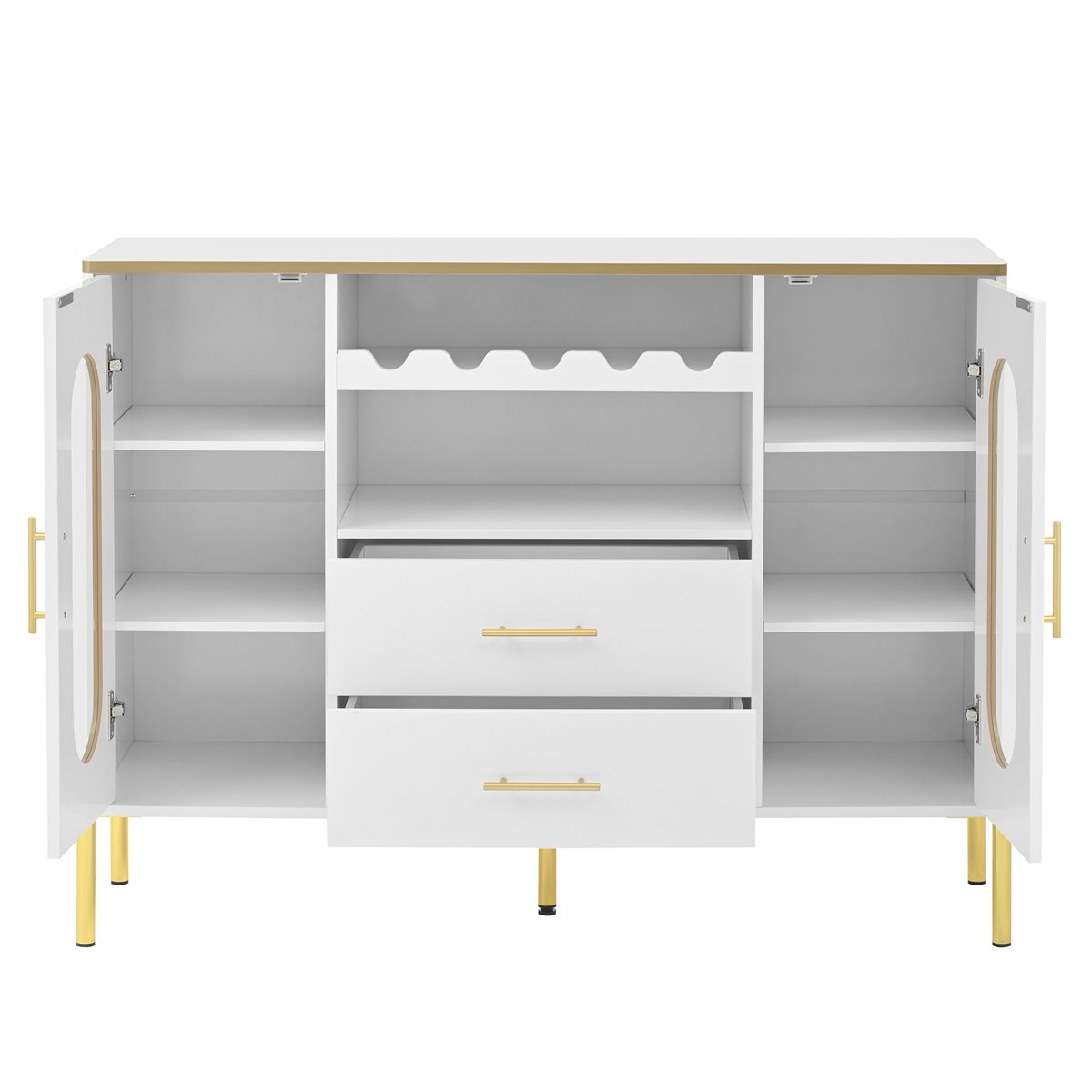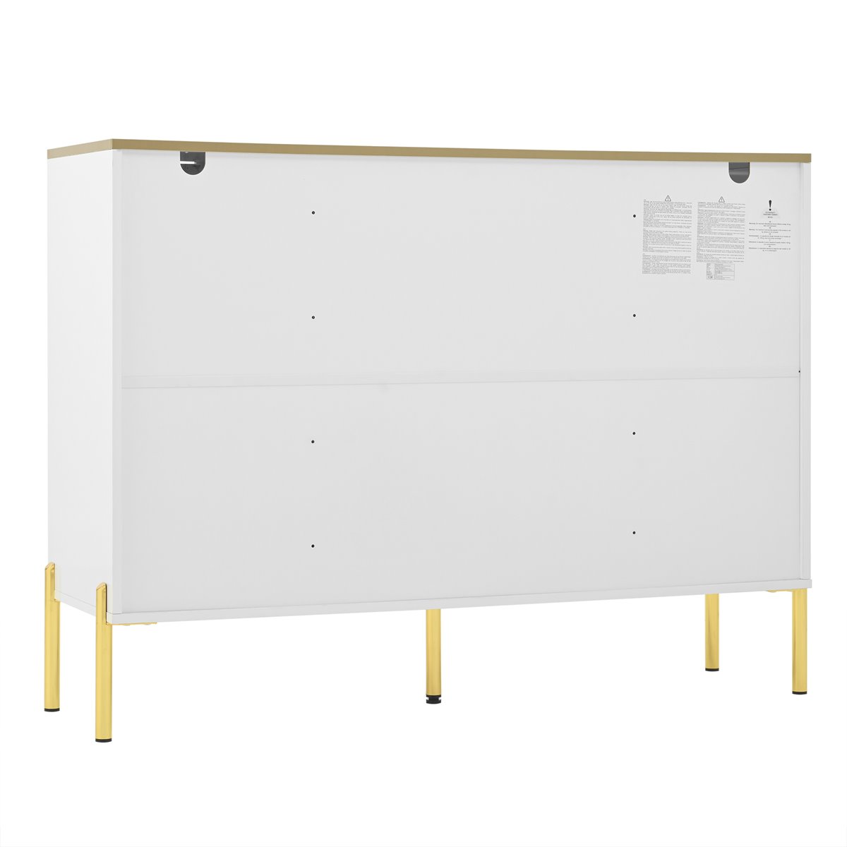- Estilo moderno: Este aparador blanco combina un diseño elegante con detalles dorados, ideal para añadir un toque sofisticado a tu comedor o sala de estar.