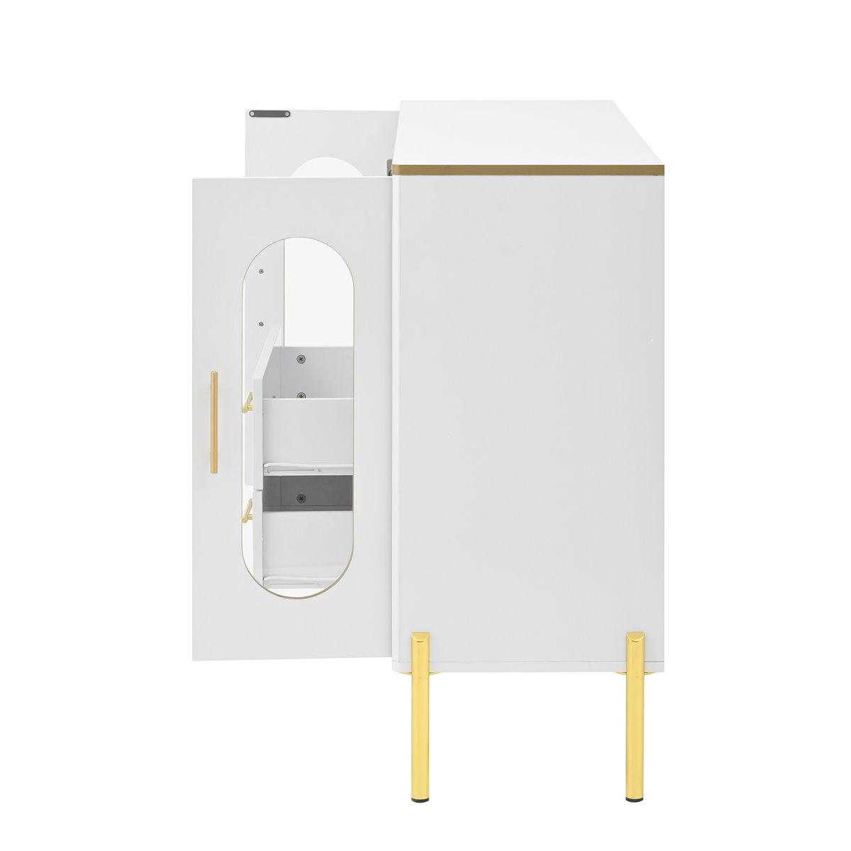 - Material de alta calidad: Fabricado en MDF resistente con una superficie blanca suave, complementado con tiradores y patas de aleación de aluminio con acabado electrochapado, lo que asegura durabilidad y protección contra el óxido.