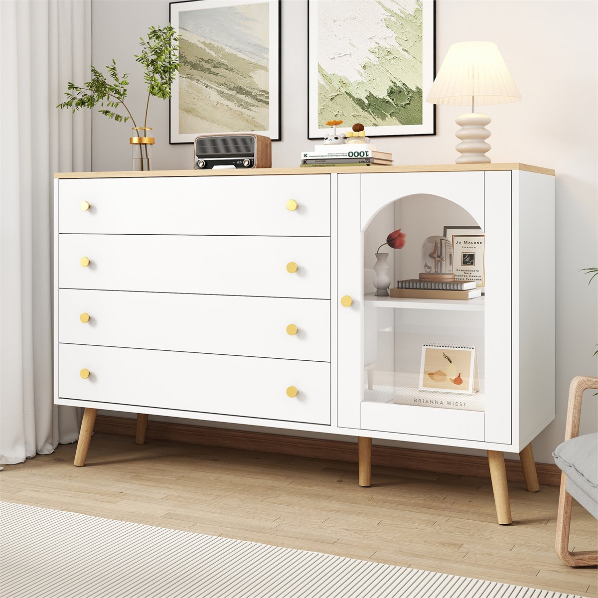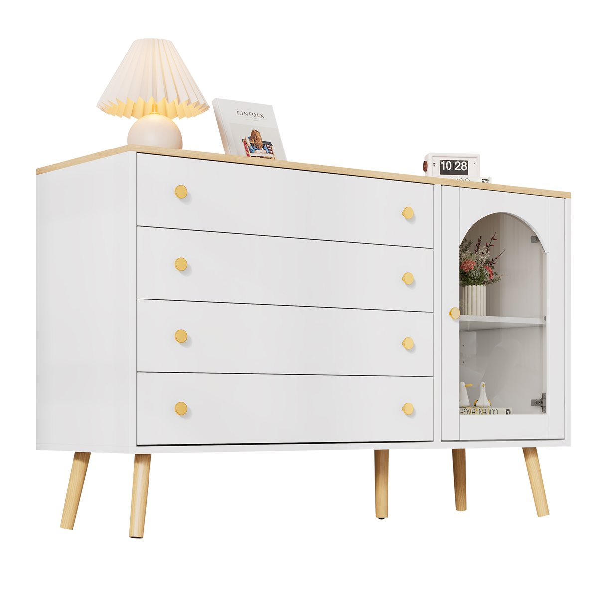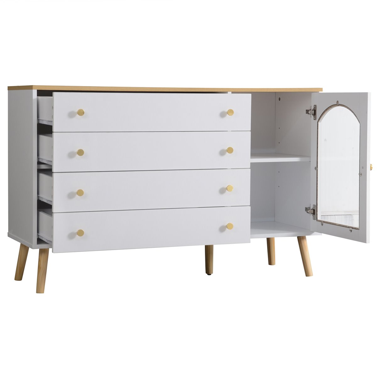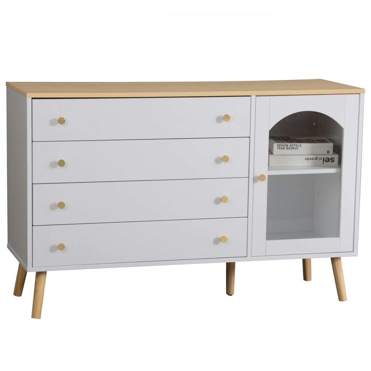 Este elegante mueble de almacenamiento en color blanco es ideal para múltiples espacios en su hogar. Con 4 amplios cajones y una resistente tapa de madera, proporciona una gran capacidad de almacenamiento para objetos de uso diario. Su diseño versátil y moderno lo convierte en la opción perfecta para el dormitorio, sala de estar, oficina o incluso como un mueble de entrada. El acabado de alta calidad en MDF asegura durabilidad, mientras que las bases de madera garantizan estabilidad. Además, incluye un sistema de seguridad anti-vuelco, lo que proporciona tranquilidad a las familias con niños.