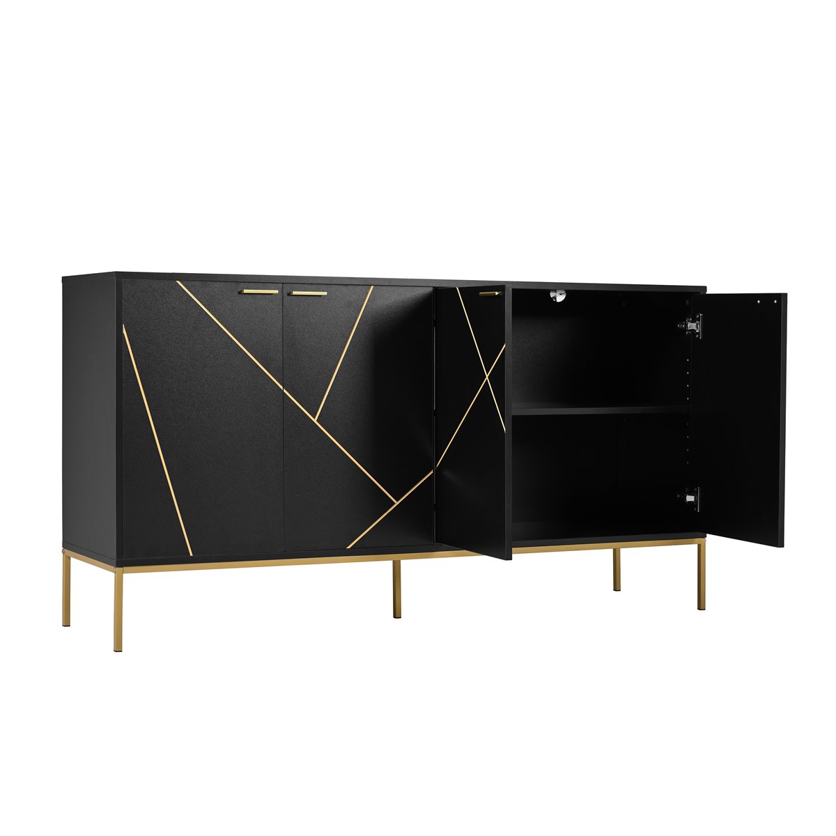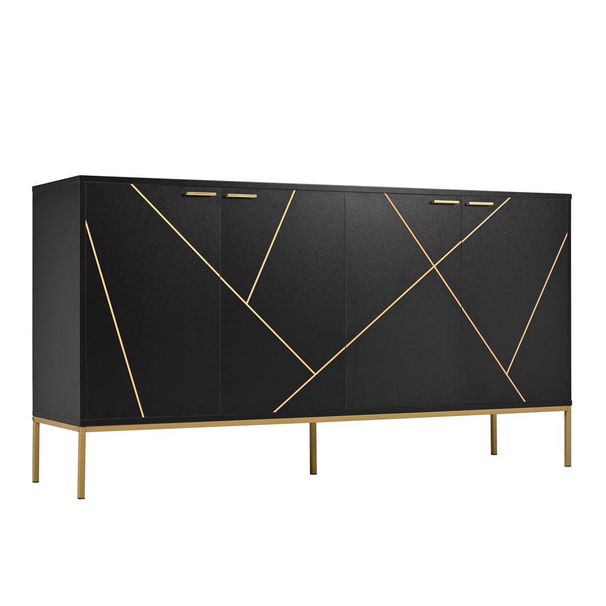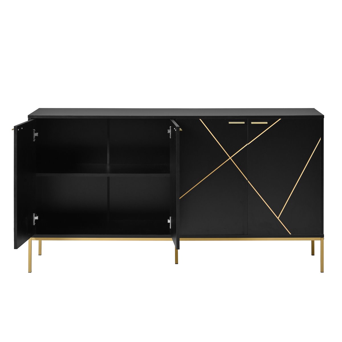 - Diseño moderno y minimalista con decoración de líneas metálicas en las puertas, en combinación de color negro y dorado.