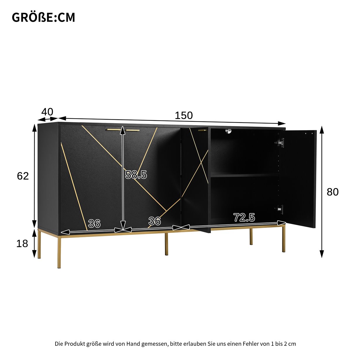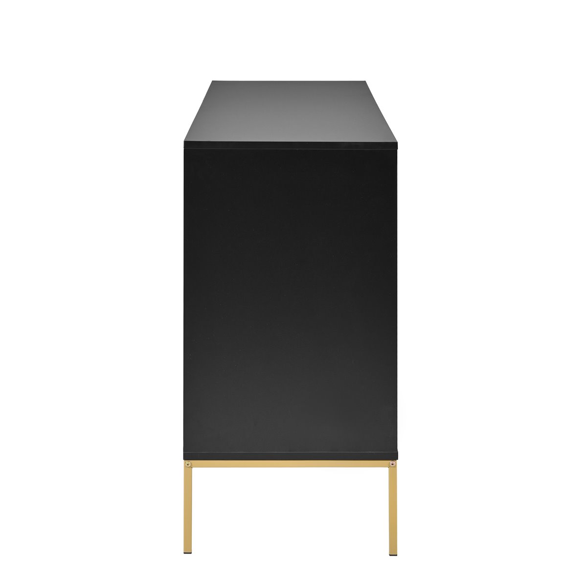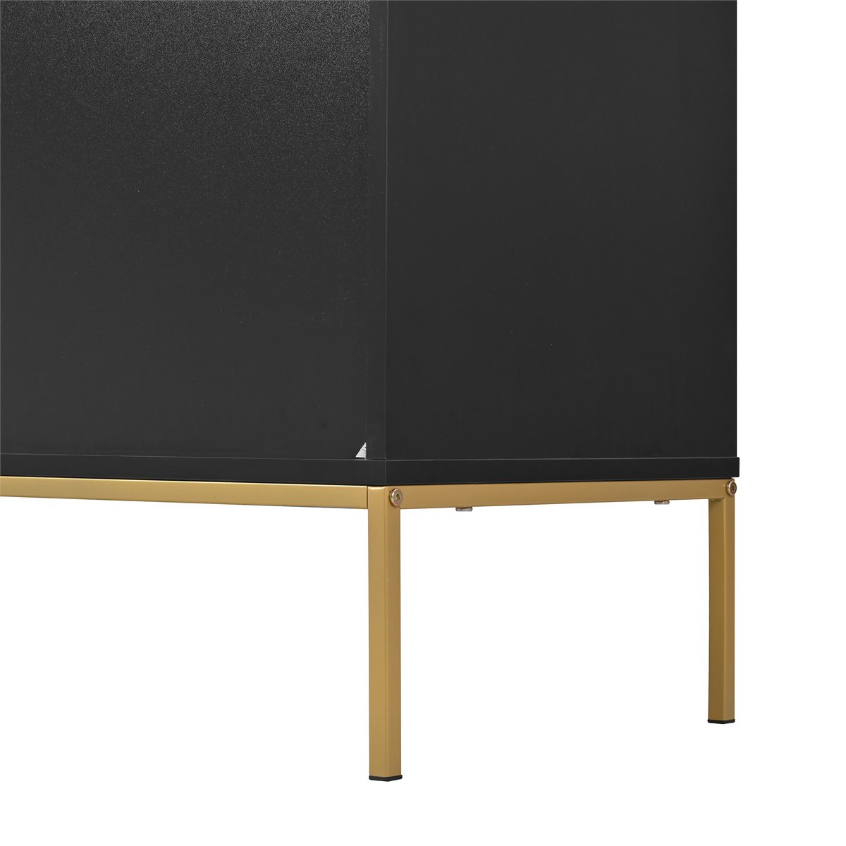 - Diseño moderno y minimalista con decoración de líneas metálicas en las puertas, en combinación de color negro y dorado.