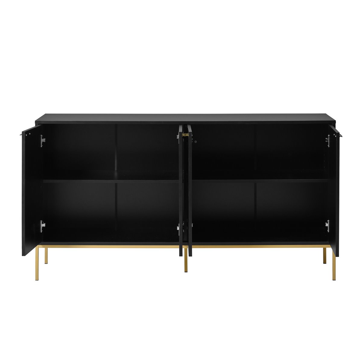 - Aparador elegante y funcional con cuatro puertas y pies metálicos, ideal para salón o dormitorio.
