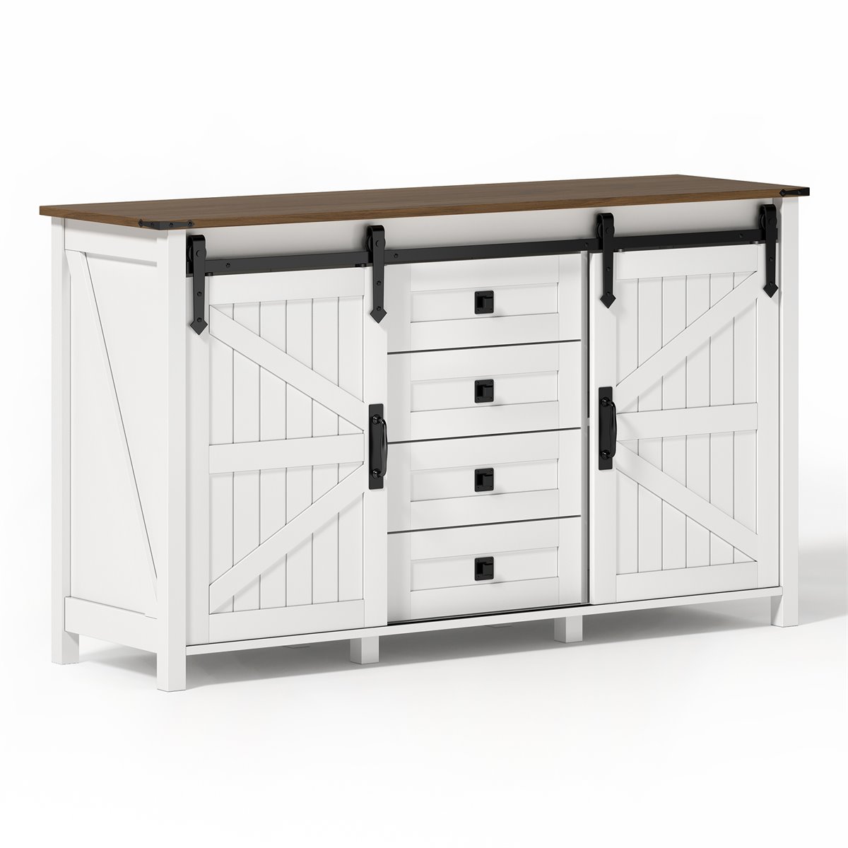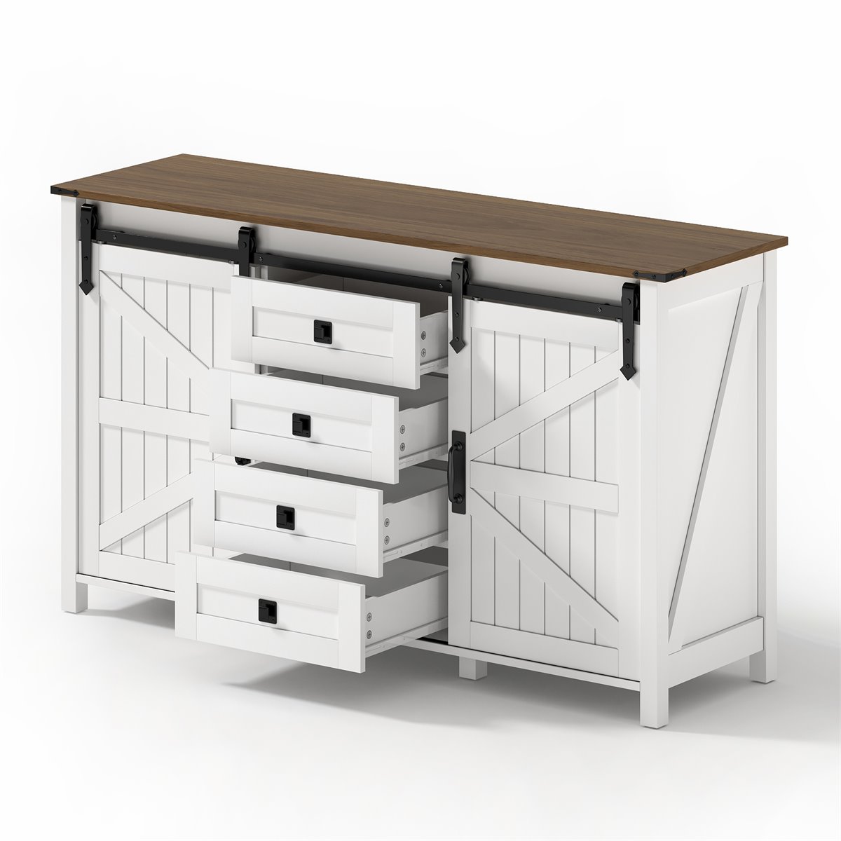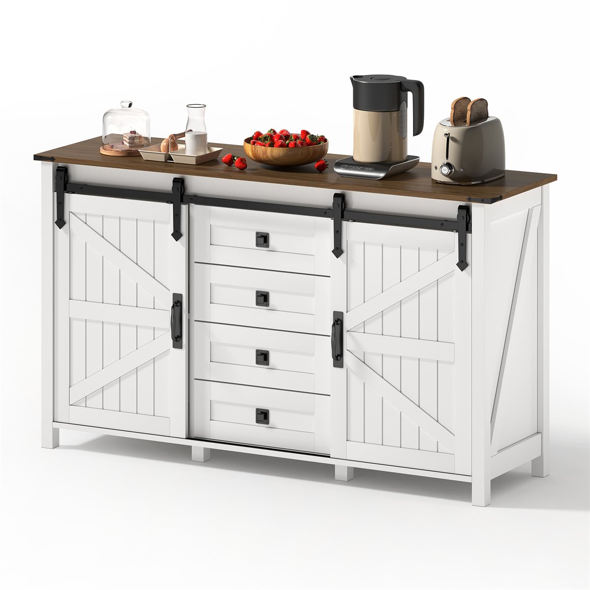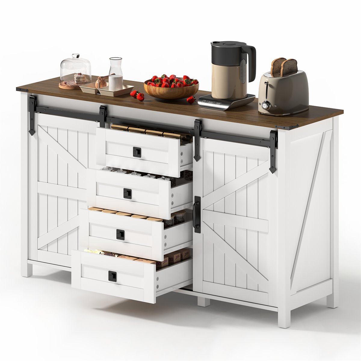 - Equipado con 2 puertas correderas y 4 cajones para organizar utensilios de cocina, como cubiertos, platos y tazas.