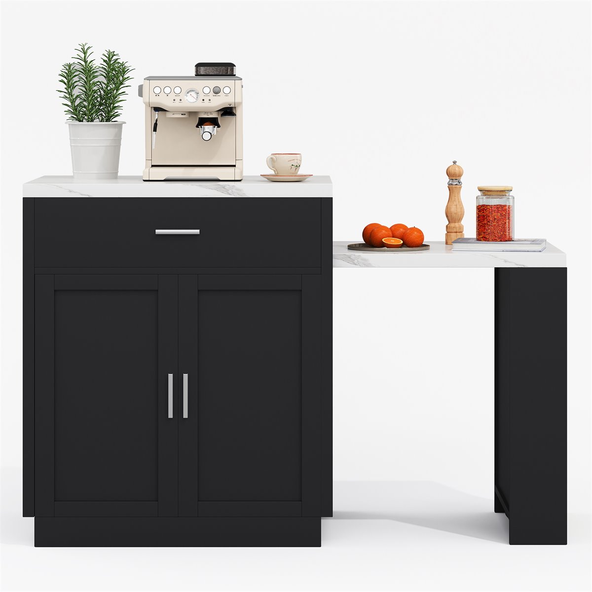 - Estilo moderno y elegante con un diseño bicolor (cuerpo negro y superficie estilo mármol blanco) que se adapta a cualquier cocina.