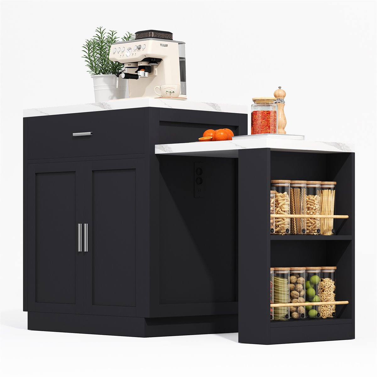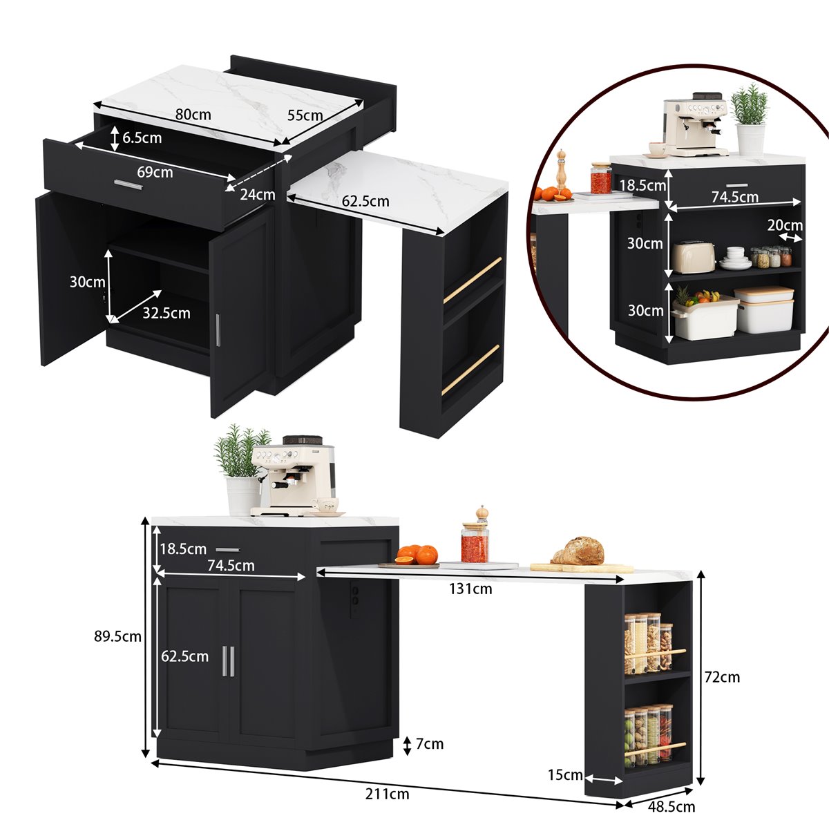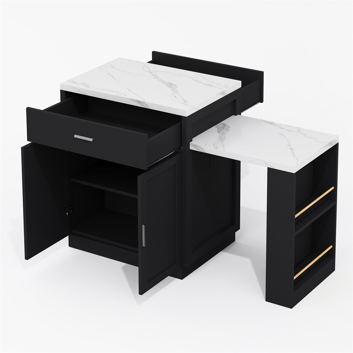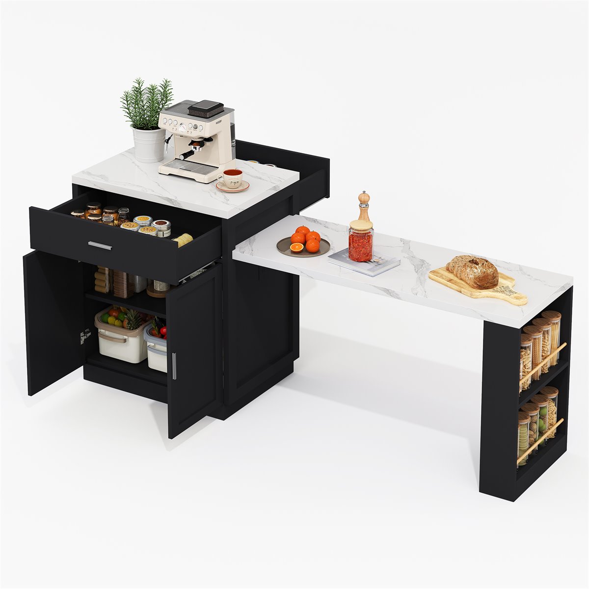 - Cocina isla con mesa extensible para 4-6 personas, ideal para maximizar el espacio en cocinas pequeñas.
