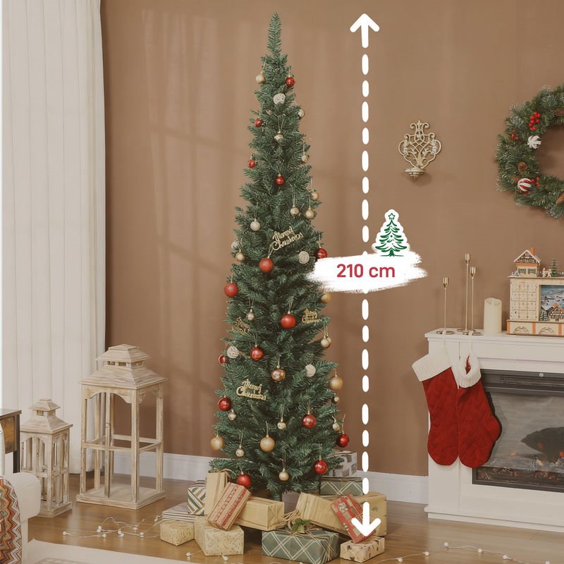 ¿Buscas un árbol de Navidad elegante sin ocupar mucho espacio? Este árbol artificial de HOMCOM de 210 cm con 401 ramas imita la forma de un abeto natural, ofreciendo un aspecto frondoso y realista. Su diseño slim es ideal para apartamentos o habitaciones pequeñas. Se monta fácilmente en secciones, está fabricado con materiales resistentes al fuego e incluye una base metálica estable para decorarlo con seguridad y confianza.