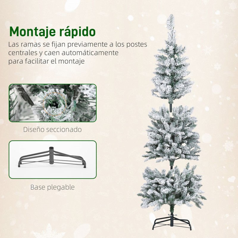 ¿Tu casa es pequeña y decorar en Navidad siempre es un reto? Con este árbol de Navidad tipo lápiz de HOMCOM no tendrás que renunciar al espíritu festivo. Su diseño estrecho encaja en cualquier rincón y el montaje rápido con bisagras te ahorra tiempo y esfuerzo. Gracias a sus ramas nevadas e iluminación LED integrada, disfrutarás de un ambiente navideño cálido y mágico en minutos, sin desorden ni complicaciones.