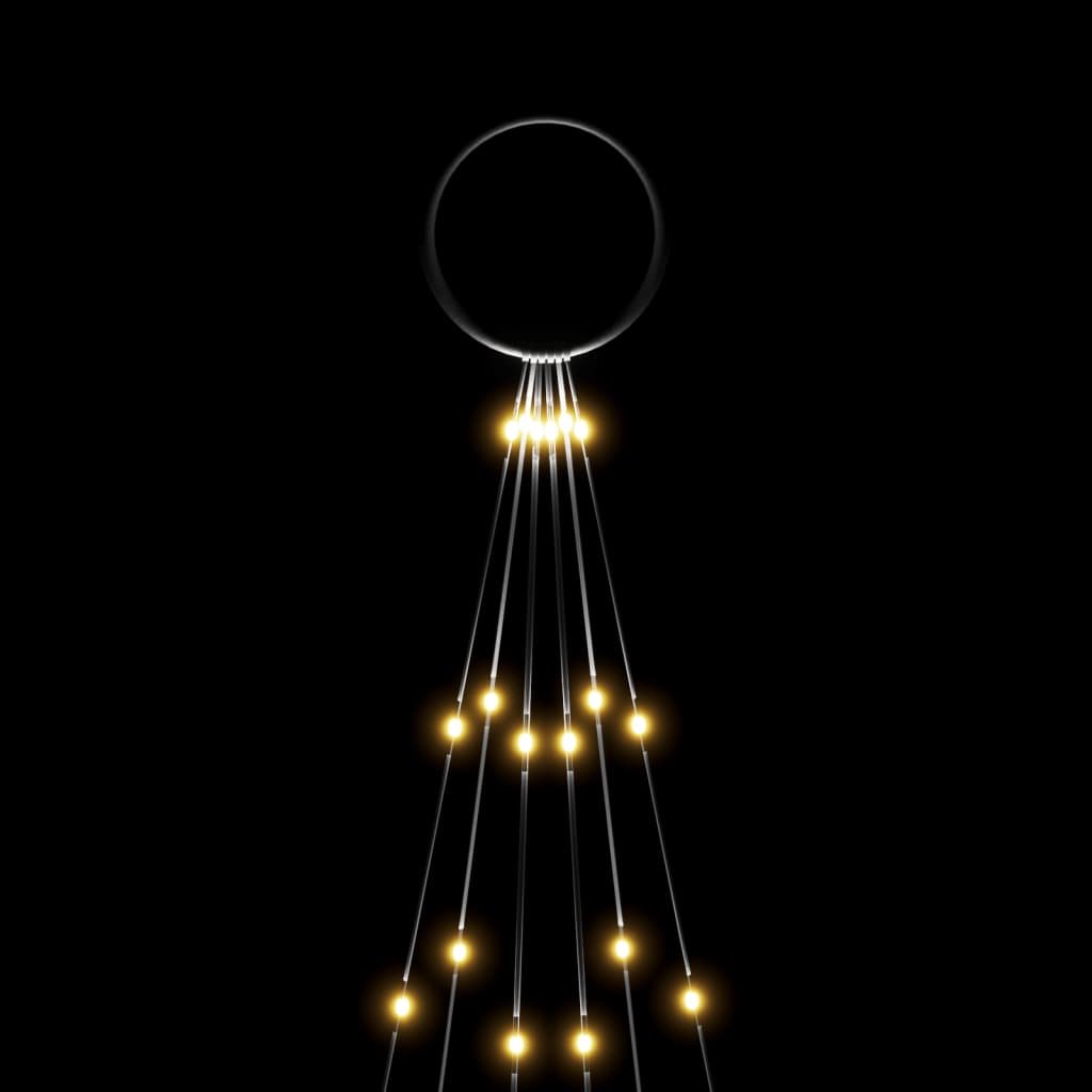 Transforma un mástil en un bonito árbol de Navidad iluminado durante las fiestas. ¡Este árbol de Navidad es tan fácil de instalar como izar una bandera en un asta! Árbol LED por toda la superficie: Este árbol de Navidad con LED por toda la superficie, con una altura de 180 cm y un diámetro de 70 cm, está equipado con 108 LED de color blanco cálido y de bajo consumo con una distribución recta.Diferentes efectos de iluminación: La luz del árbol de Navidad cuenta con 8 efectos de iluminación diferentes: una combinación de todos los efectos, brillo lento, parpadeo / intermitente, en onda, persiguiendo / agua corriendo, secuencial, encendido constante y desvanecimiento lento.Diseño compacto: Gracias al innovador diseño de este árbol, la decoración navideña puede guardarse de forma muy compacta y sacarse para usarla en las próximas fiestas. Fácil de montar: El montaje es sencillo y lleva un máximo de 25 minutos. Gracias al ingenioso diseño, puedes izar el árbol de Navidad con LED en el asta de forma fácil y rápida. Nota:Si utilizas el producto en el exterior, asegúrate de que la conexión USB está enchufada en un entorno seco.Este árbol de Navidad iluminado se entrega sin mástil.El producto tiene un conector USB, pero no se incluye la fuente de alimentación USB de 5 V certificada.Cada producto viene con un manual de montaje en la caja para facilitar el montaje.