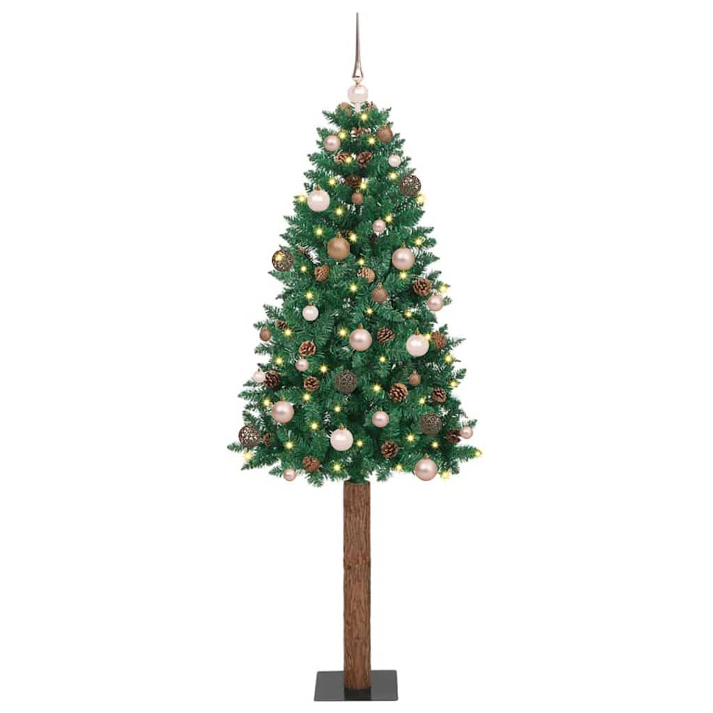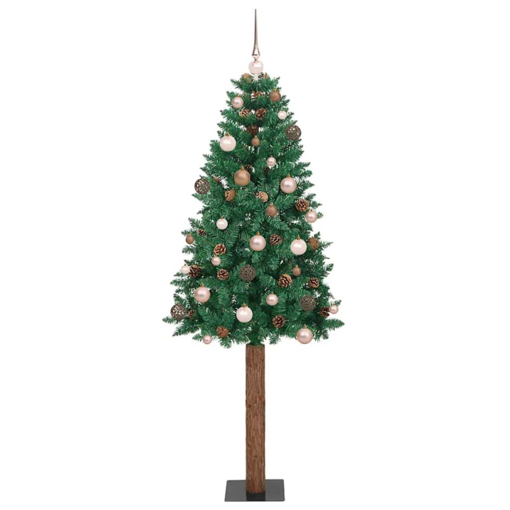 - Decorativo con piñas y bolas ornamentales, puntas de ramas realistas, tronco de madera real