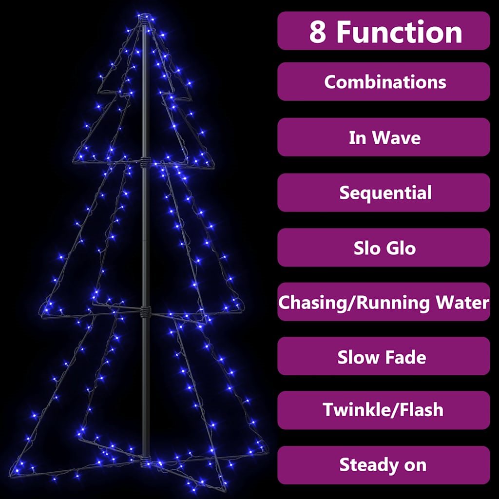 Este cono de Navidad está diseñado específicamente para decorar tu árbol de Navidad y creará el ambiente perfecto para tu Navidad. Las luces constan de 160 LEDs de alta potencia, que son muy eficientes energéticamente y emiten una luz brillante. Diseñado con 8 efectos de iluminación diferentes: una combinación de todos los efectos, resplandor lento, centelleo/flash, en onda, persiguiendo/corriendo el agua, secuencial, encendido constante y desvanecimiento lento, se ilumina maravillosamente y crea un ambiente mágico de vacaciones. Atraerá todas las miradas, especialmente por la noche, y también servirá como acogedora fuente de luz ambiental. El árbol cónico independiente se puede fijar al suelo de forma fácil y segura con los materiales de montaje incluidos. Nota: El USB incluido no es impermeable, por lo que esta parte tiene que evitar el agua, pero gracias al cable de 5 m el árbol se puede utilizar al aire libre, ya que el cable y el producto son impermeables. El producto tiene un conector USB, pero la fuente de alimentación USB de 5 V certificada no está incluida.