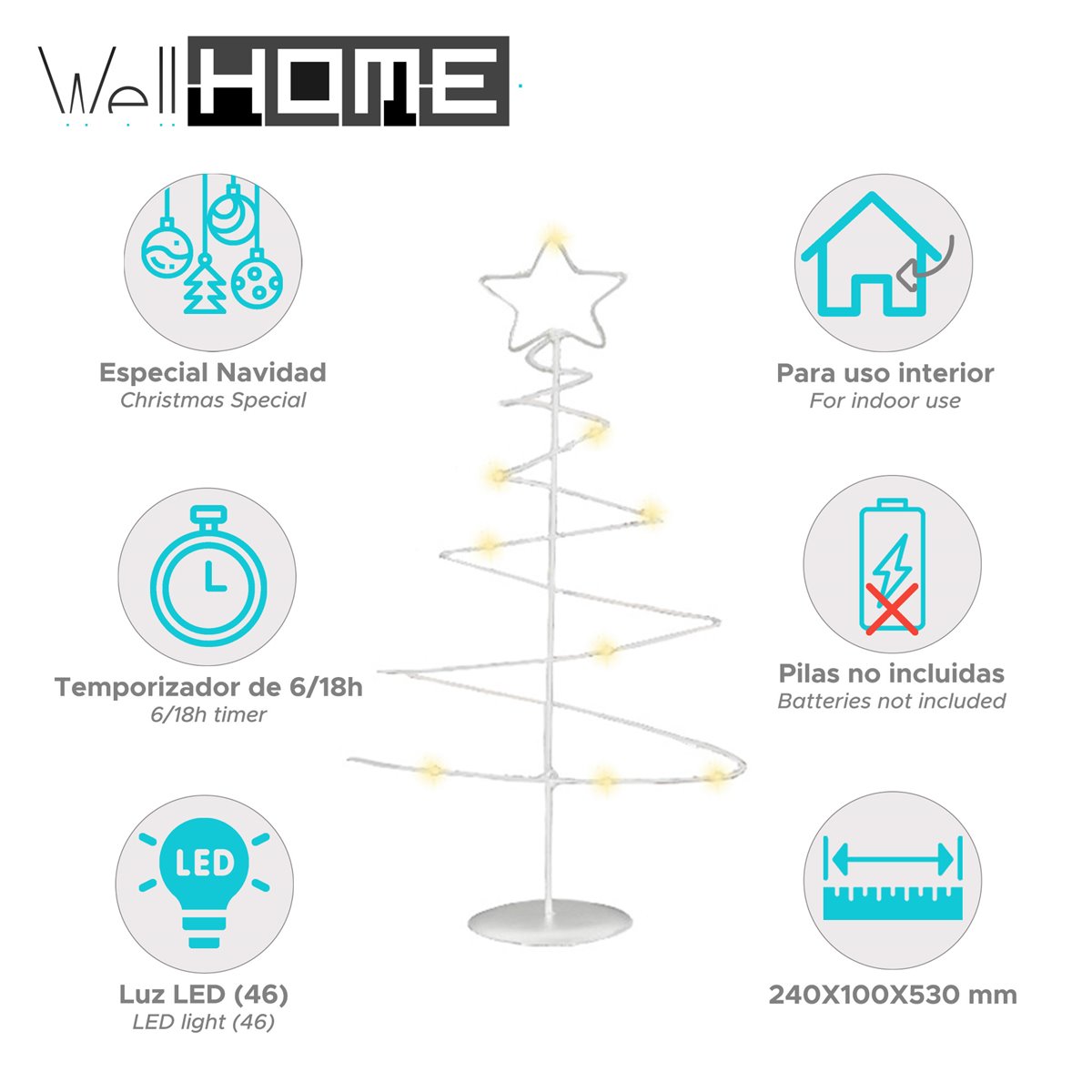 Con un tamaño de 53x24x10cm y un elegante marco negro, este árbol de metal cuenta con un práctico temporizador para configurar automáticamente la iluminación.