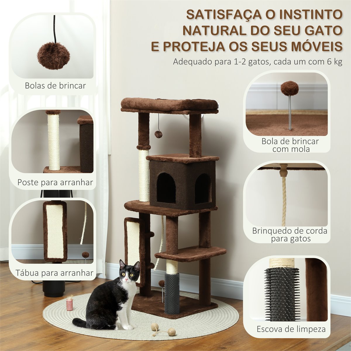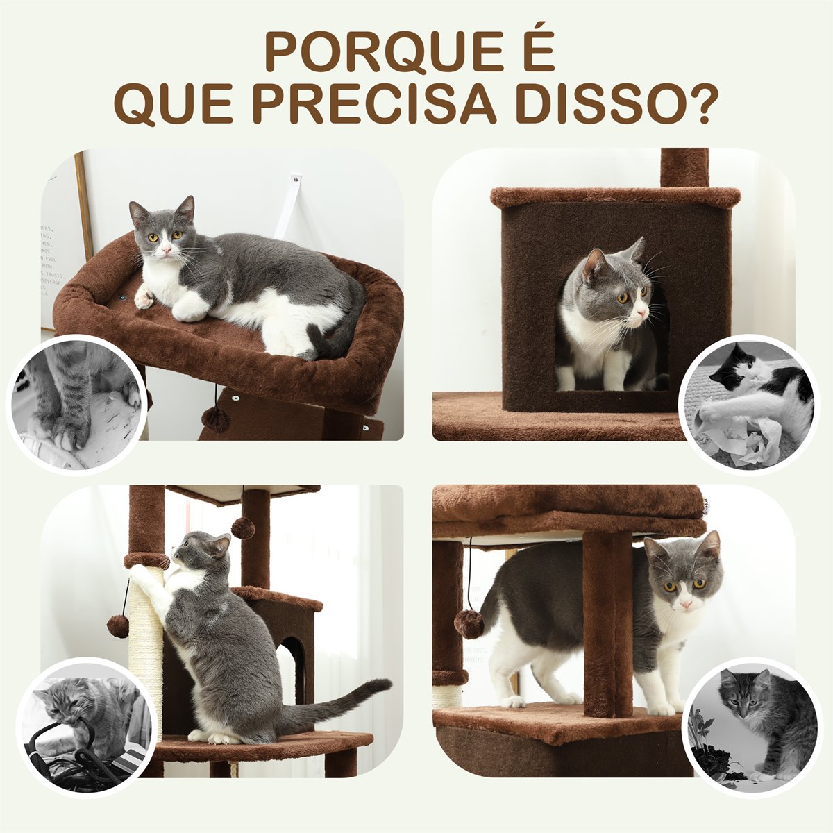 Satisface los instintos de tu gato con seguridad con este rascador de PawHut. Equipado con postes y una alfombra para rascar, una cama acogedora, una cueva, bolas de juguete y un cepillo para pelos, este torre para gatos es un auténtico paraíso para tu amigo peludo. Fabricado en aglomerado de madera y sisal, protege tus muebles de los arañazos y ofrece un refugio ideal para la diversión y el descanso de tu mascota.