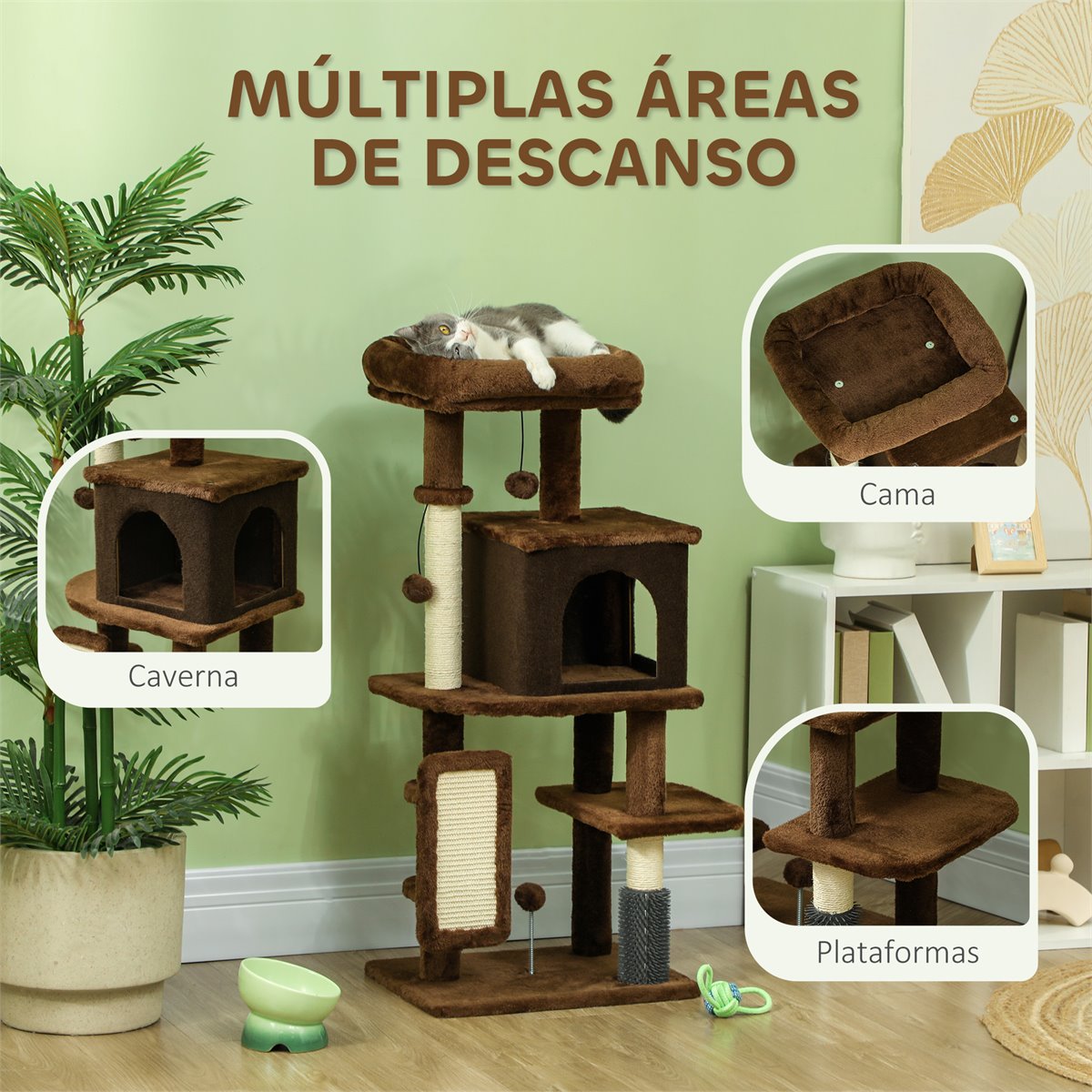 - Árbol para gatos es ideal para mantener a tu mascota entretenida y activa
