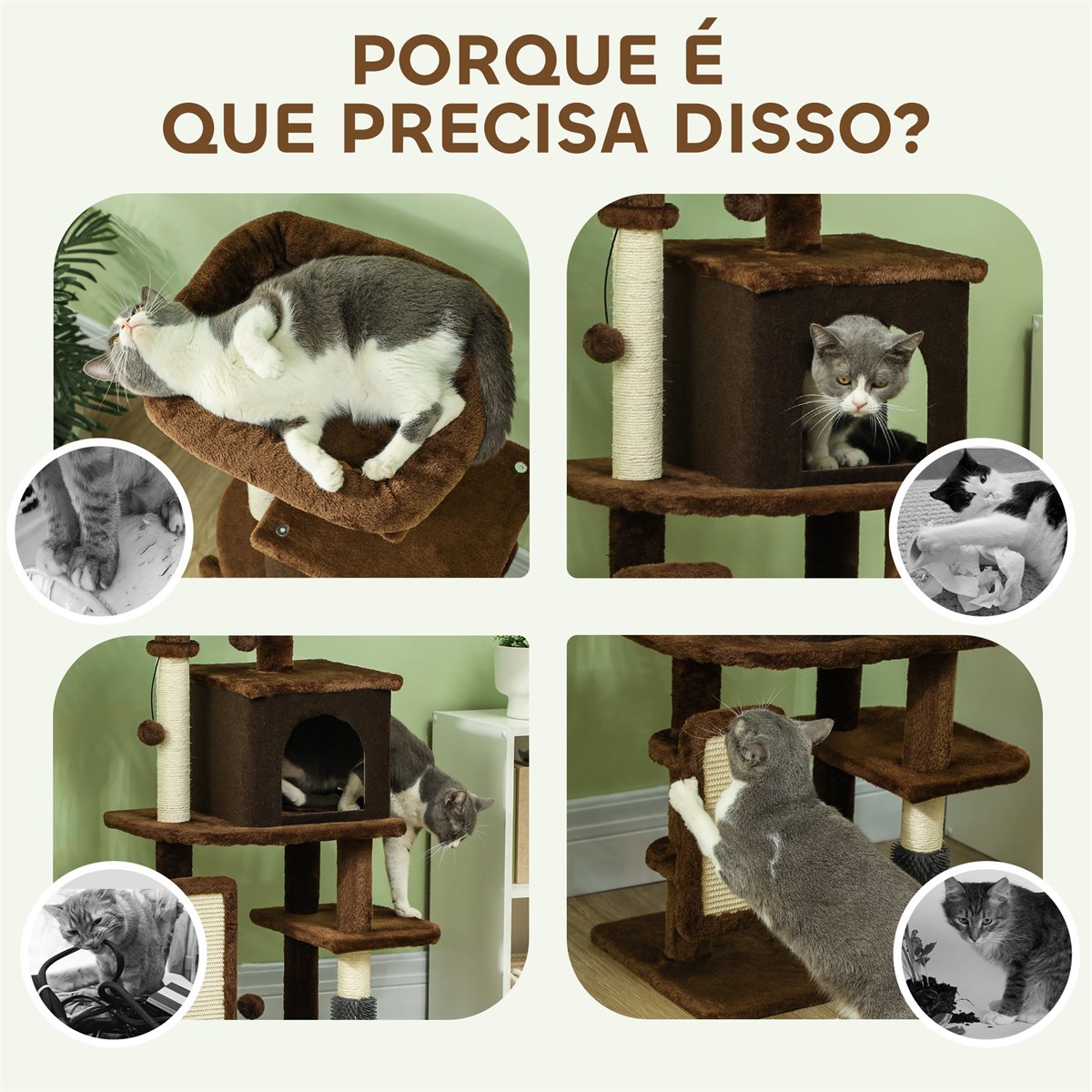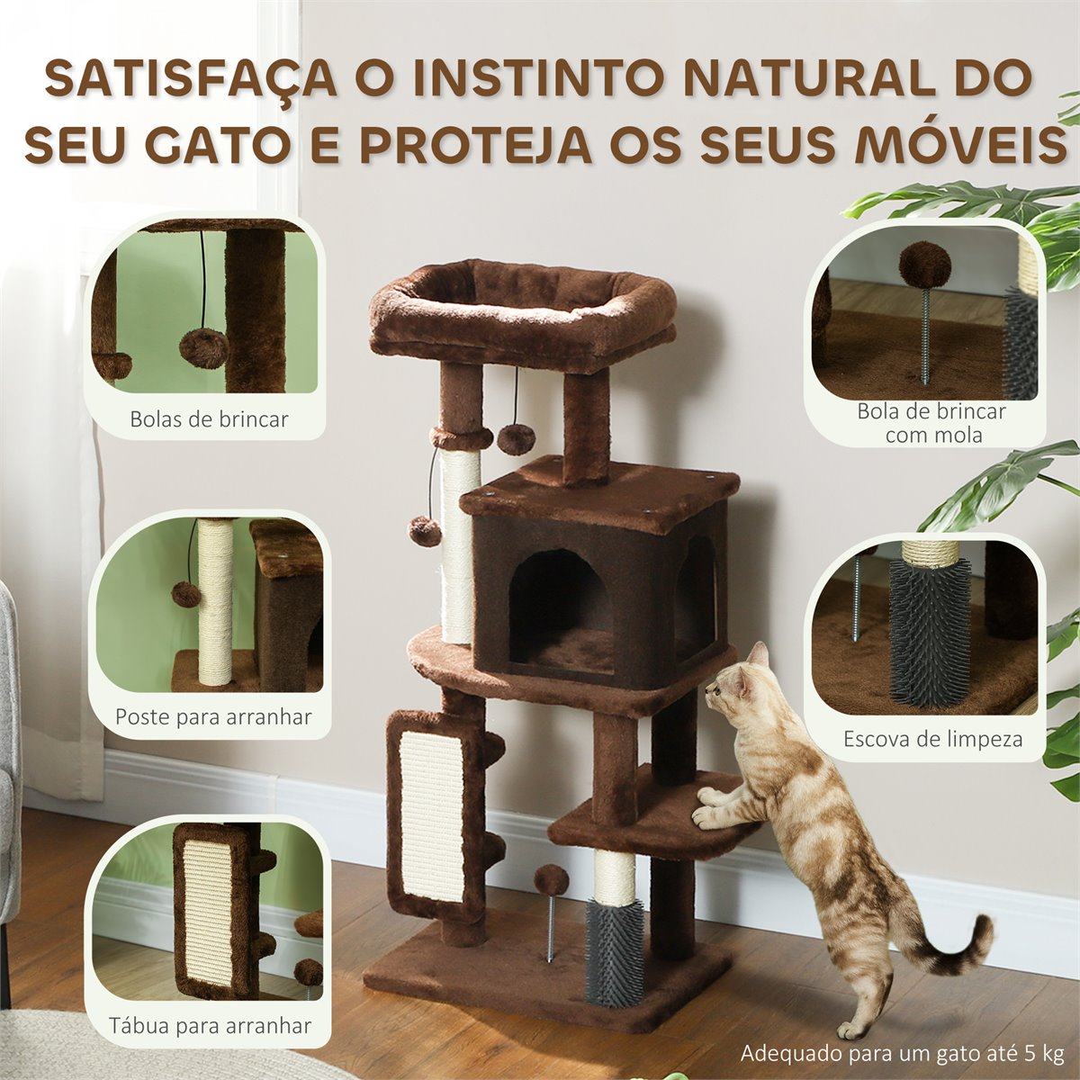 - El poste y la alfombra para rascar previenen daños en los muebles de la casa