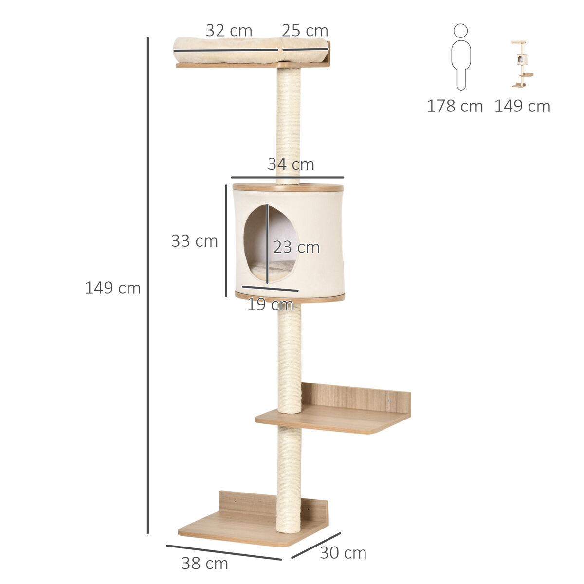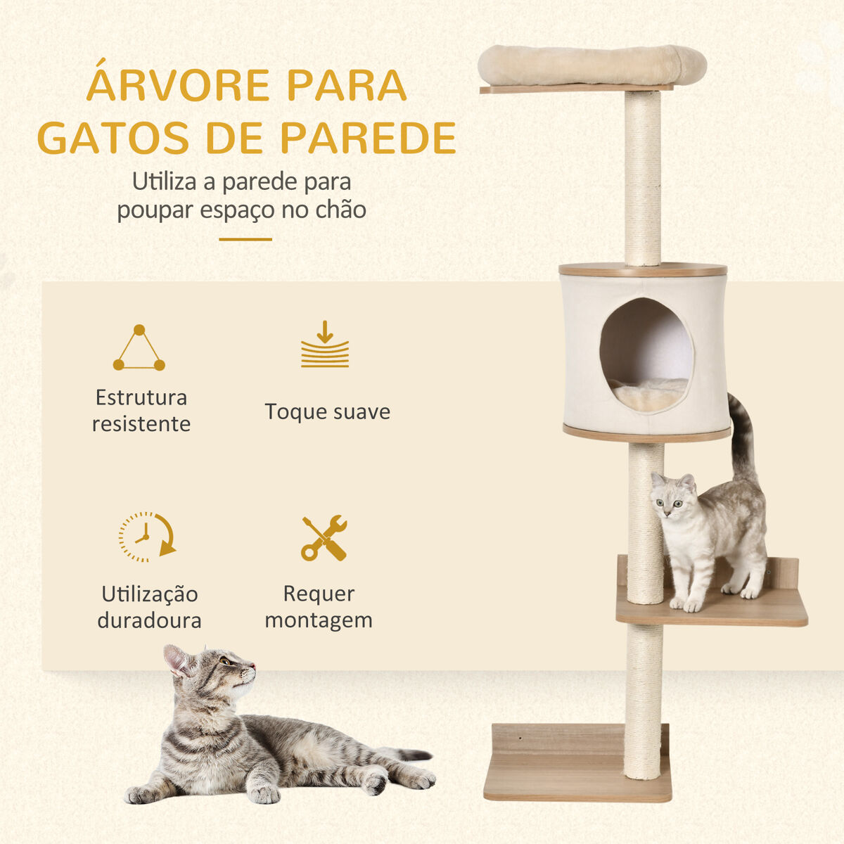 - Árbol para gatos de diseño vertical montado en la pared para aprovechar eficientemente el espacio
