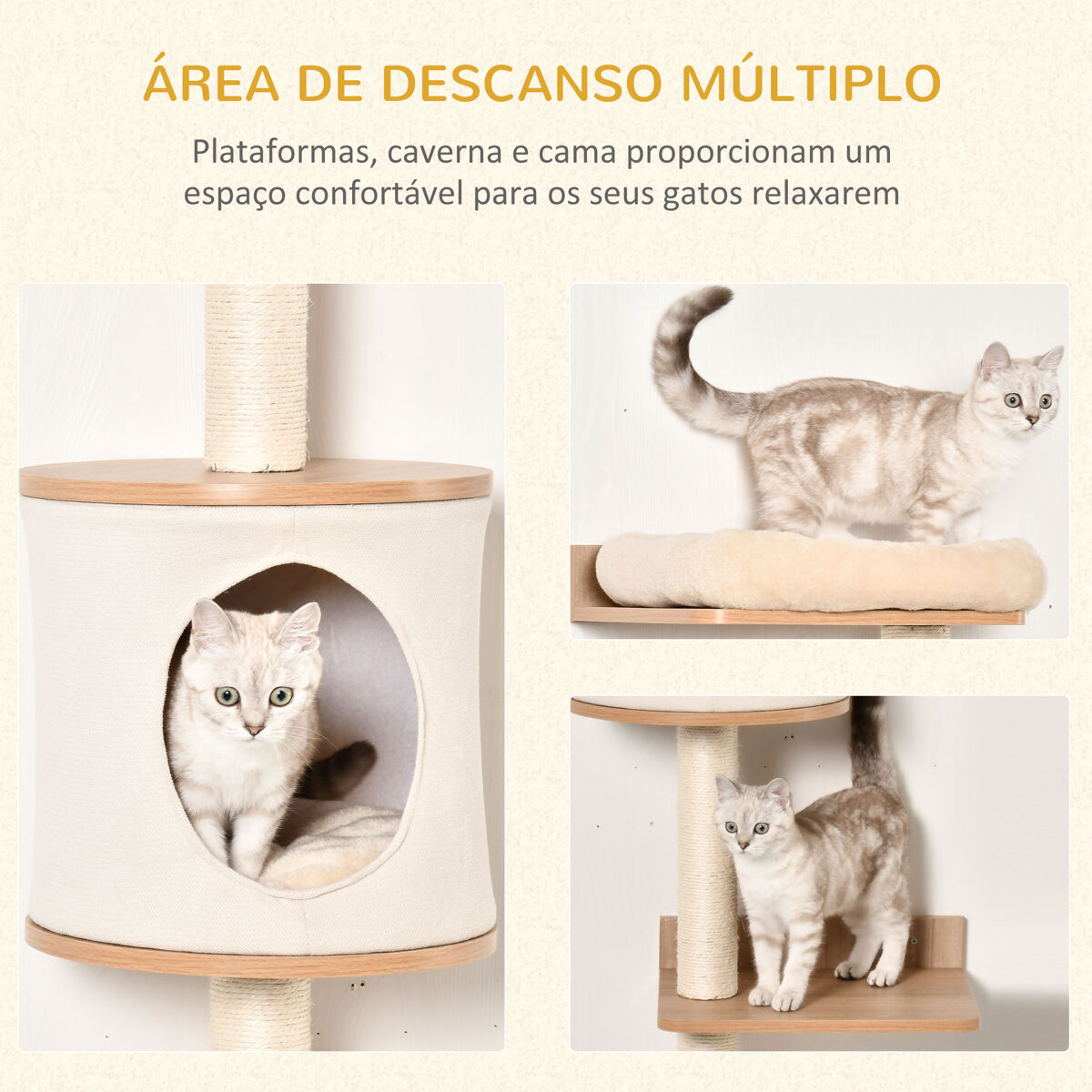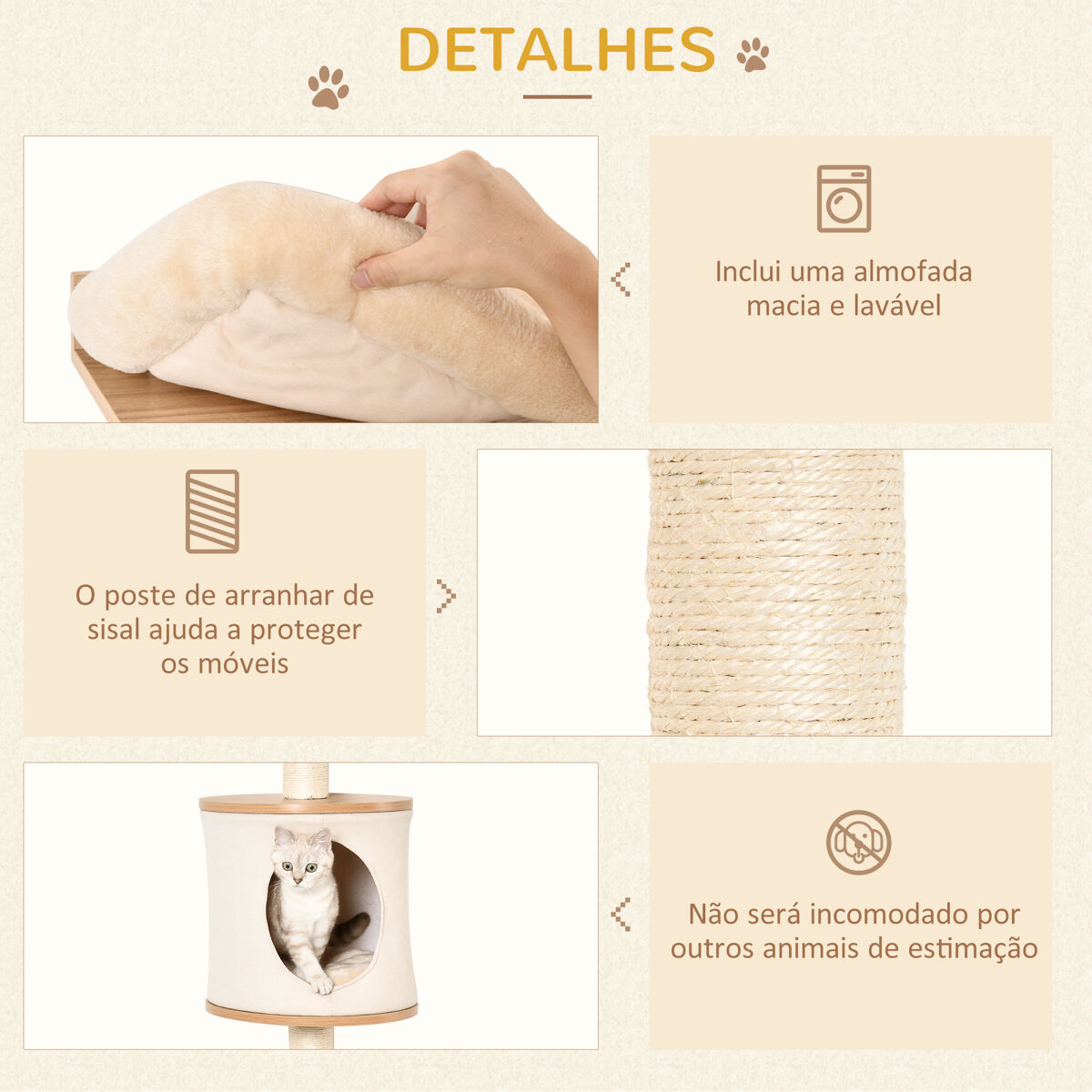 Si tu gato es un integrante más de tu casa, seguro que te encantará que tenga un espacio fijo para su descanso, diversión y necesidades, como la de afilar sus garras. Pues con este árbol para gatos de pared de PawHut se cumplen todas estas funciones, y además, está hecho de melamina de madera y en tonos neutros para que encaje a la perfección en cualquier espacio. Cuenta con 3 postes de rascado, una cama, una cueva y múltiples plataformas a distinto nivel.