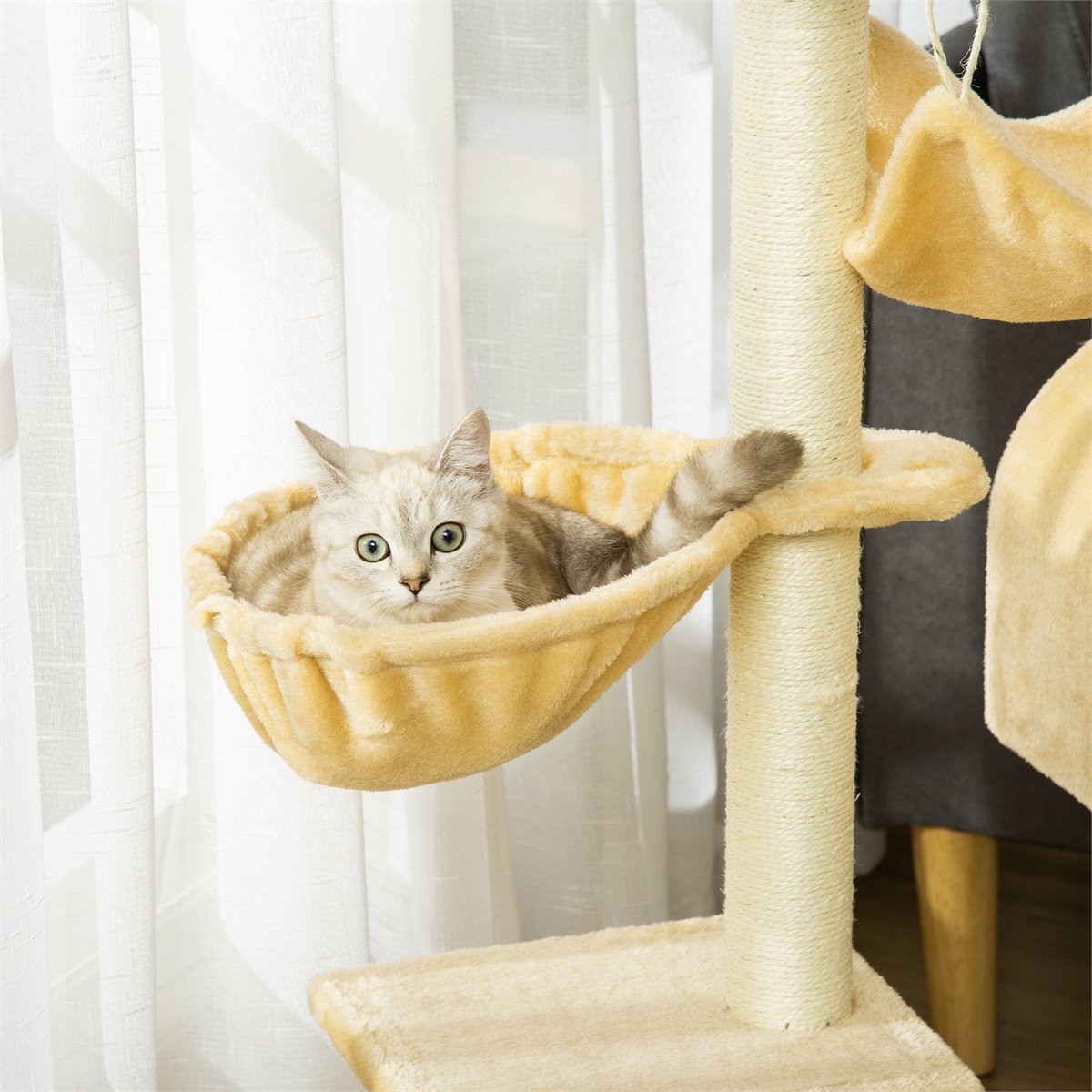 Este rascador de gatos de PawHut ofrece mucho espacio para que tus gatos jueguen y se entretengan. Dispone de una caseta, varias plataformas, una escalera, una cueva-nido y una hamaca, de modo que es una opción óptima para que tu gato entrene, juegue o duerma. Los árboles rascadores para gatos son un accesorio imprescindible para mantener el resto del mobiliario de tu hogar sin rasguños ¡Cuida tu mascota y regálale este fantástico rascador!