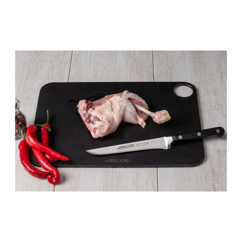 Este cuchillo deshuesador está fabricado con un mango de polioximetileno (POM) en color negro y con un diseño clásico, que incluye un remate redondeado para aportar una mayor comodidad. Con defensa para evitar posibles cortes indeseados.