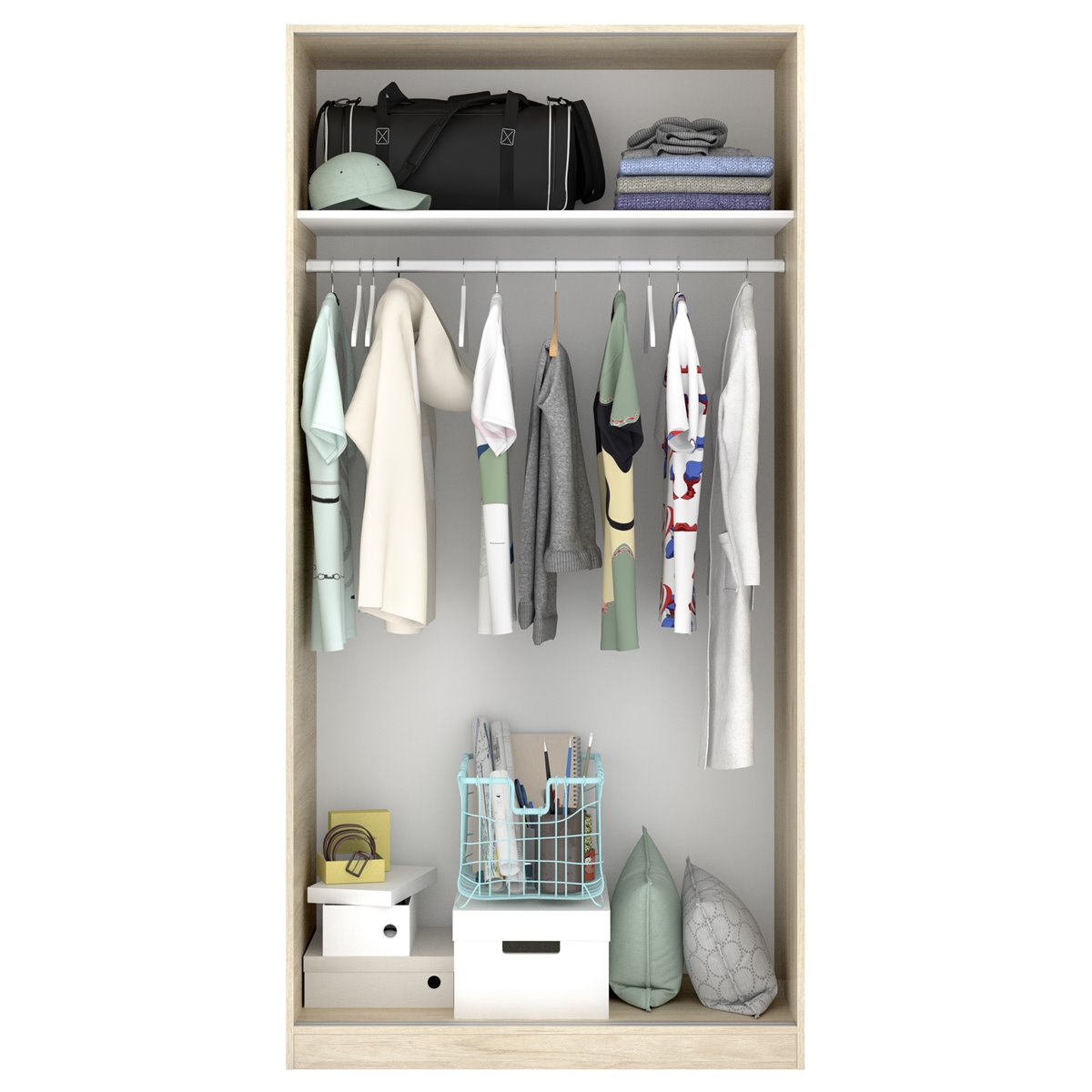 Con este armario podrás guardar tanto ropa doblada como en percha. En su base, podrás colocar los objetos más pesados como zapatos, bolsas y otros complementos. Su diseño, comodidad y su gran versatilidad superarán todas tus expectativas ¡No te pierdas este fantástico armario Slide Plus!