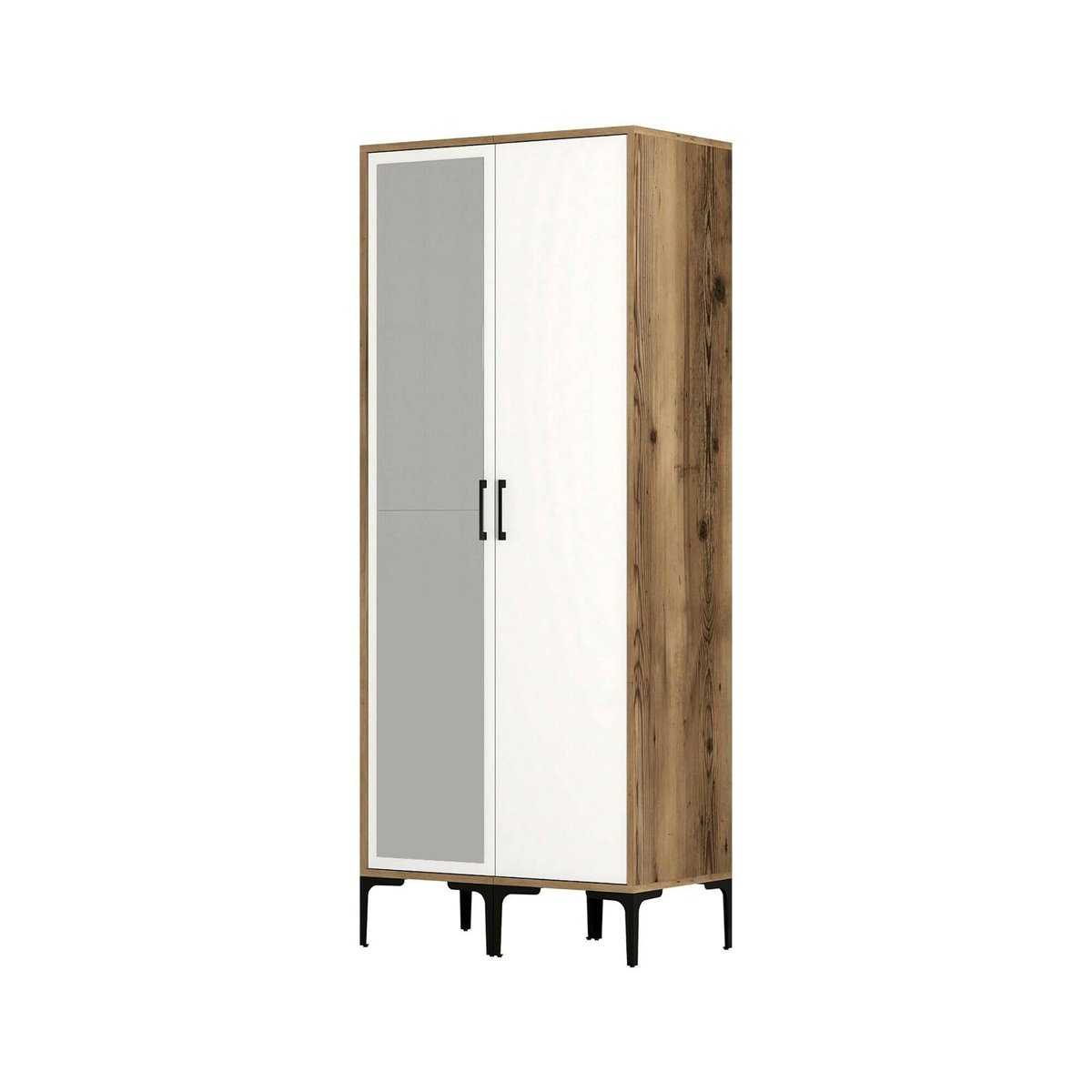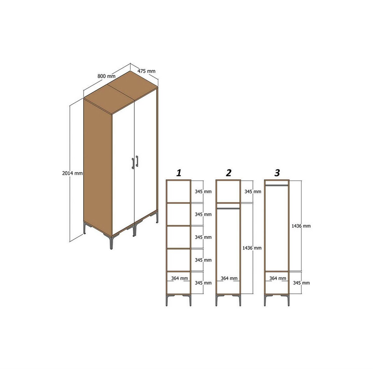 ARMÁRIO 2 PORTAS - Móveis de Quarto, Roupeiro, Roupeiro, 80x201h48 cm, Nogueira e Branco.
