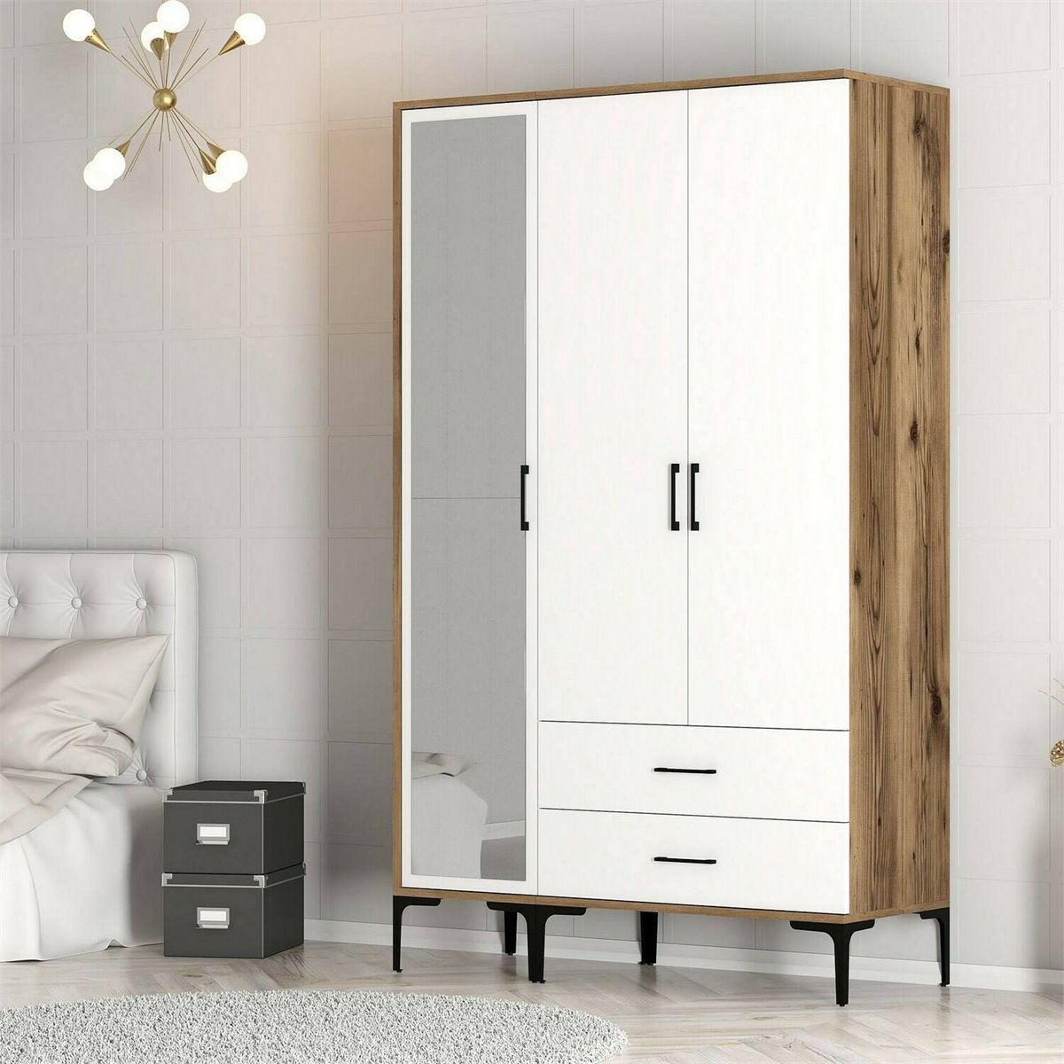 ARMÁRIO 3 PORTAS - Móveis de Quarto, Roupeiro, Roupeiro, 120x201h48 cm, Nogueira e Branco.