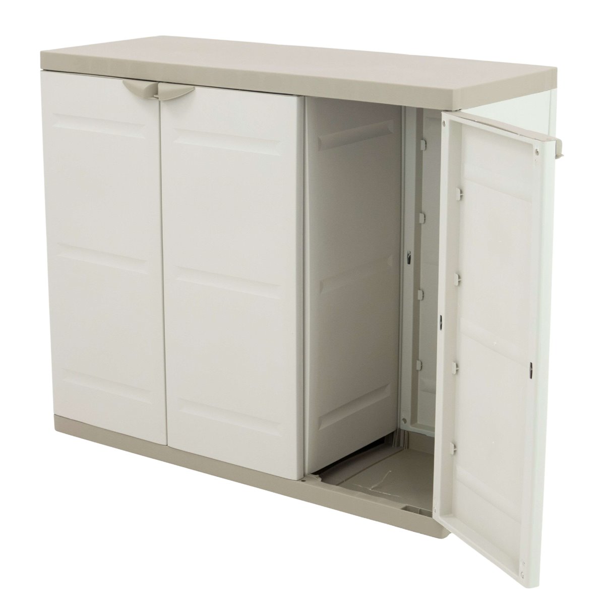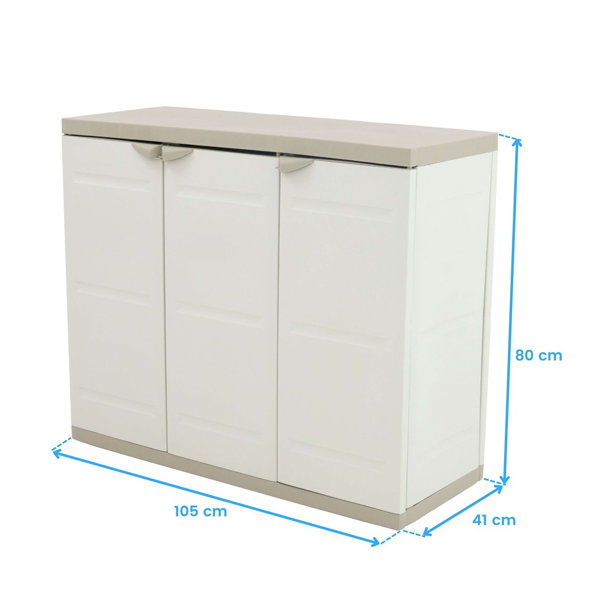 El medio armario Titanium en color beige ofrece una presencia discreta y serena en el exterior de tu hogar. Su tonalidad suave se adapta fácilmente a diferentes estilos de decoración, generando un impacto visual que brinda una sensación de orden y simplicidad. Este mueble se integra armónicamente en cualquier ambiente al aire libre, aportando un toque de calma y organización visual que transforma el entorno en un espacio más acogedor y equilibrado. El medio armario Titanium está fabricado en resina, un material que se distingue por su ligereza y fácil mantenimiento. Este mueble consta de 2 puertas abatibles y 2 estantes ajustables, ofreciendo versatilidad en la organización de su interior. Su diseño sin necesidad de herramientas facilita el montaje, permitiéndote aprovechar al máximo cada espacio de almacenamiento. Agrega este armario a tu carrito hoy mismo y simplifica tus tareas de organización. Medidas: Ancho: 105 cm, Alto: 80 cm, Profundidad: 41 cm. Se trata de mobiliario con kit de montaje, que incluye manual de instrucciones y tornillería.