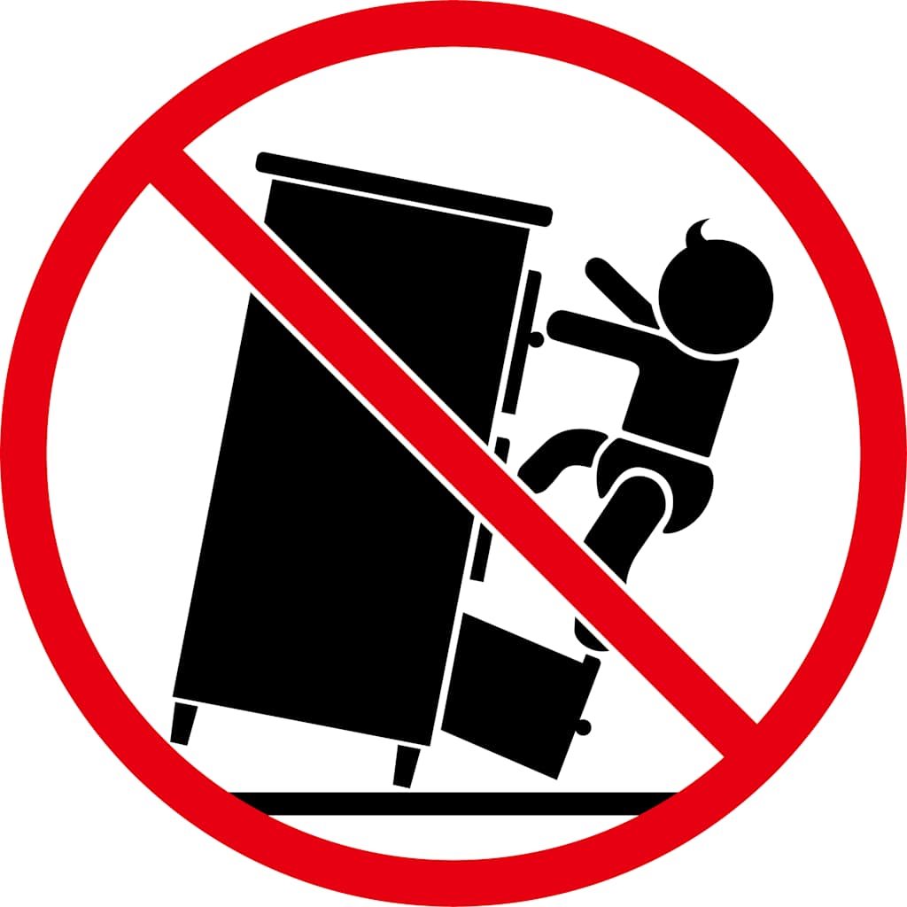 - Para evitar que vuelque, este producto debe usarse con el dispositivo de fijación a la pared suministrado.