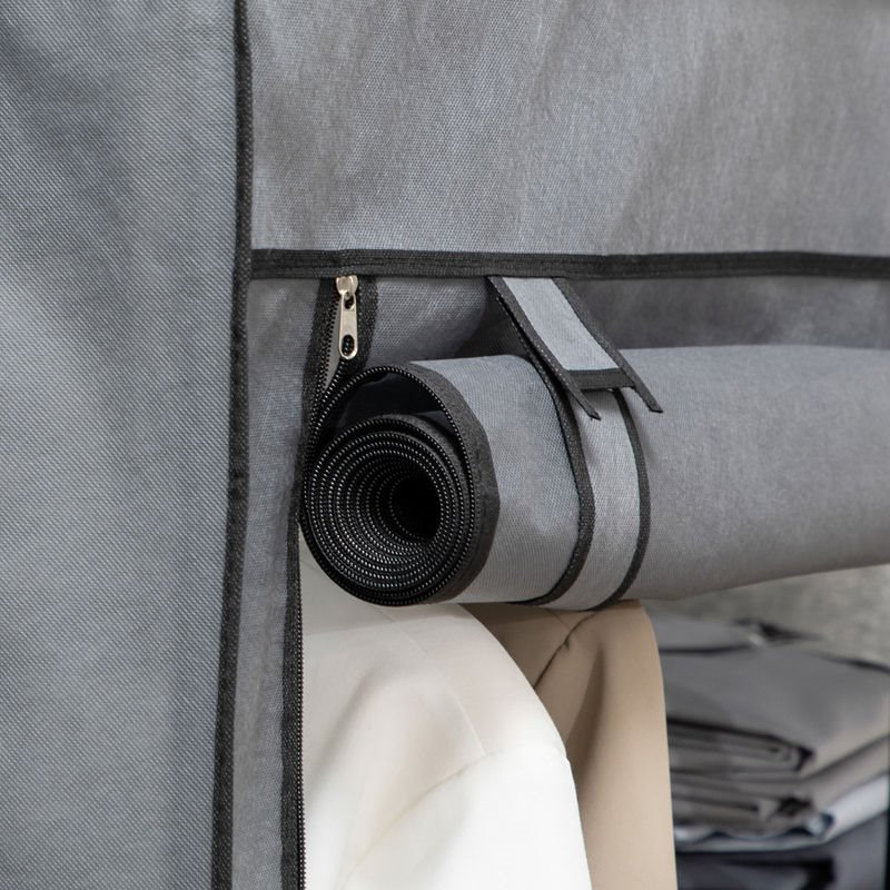 - Este armario portátil tiene funda de tela no tejida que protege la ropa del polvo y la suciedad