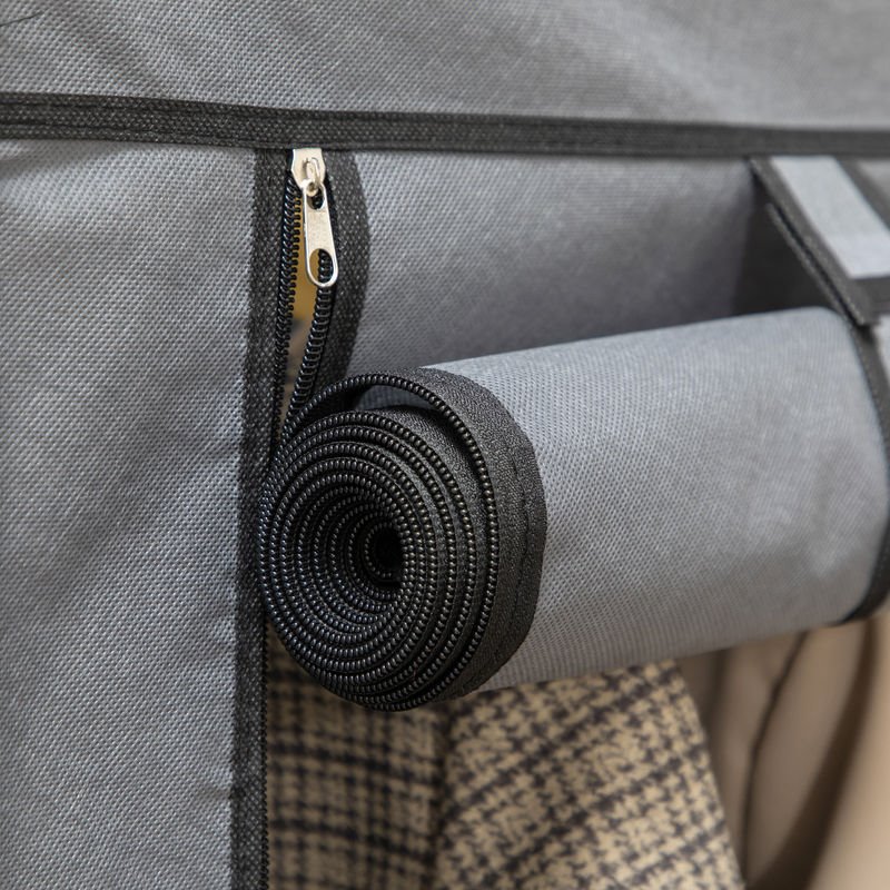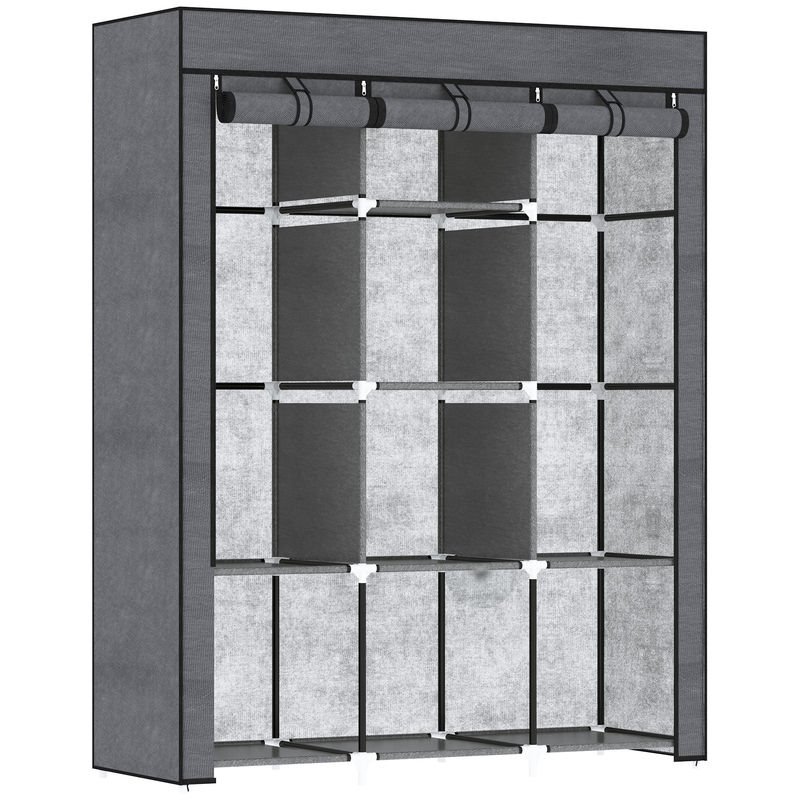 Deja que la sencillez dirija tu dormitorio con este armario de tela de HOMCOM. Gracias a su diseño versátil, este armario es ideal para cualquier habitación de tu hogar que necesite espacio de almacenamiento adicional. Dispone de barras para colgar y baldas para organizar y tener doblada tu ropa, toallas, ropa de cama o bolsos. Gracias a la funda de tela no tejida, es perfecta para mantener tus objetos alejados del polvo. ¡Es la solución de organización ideal!