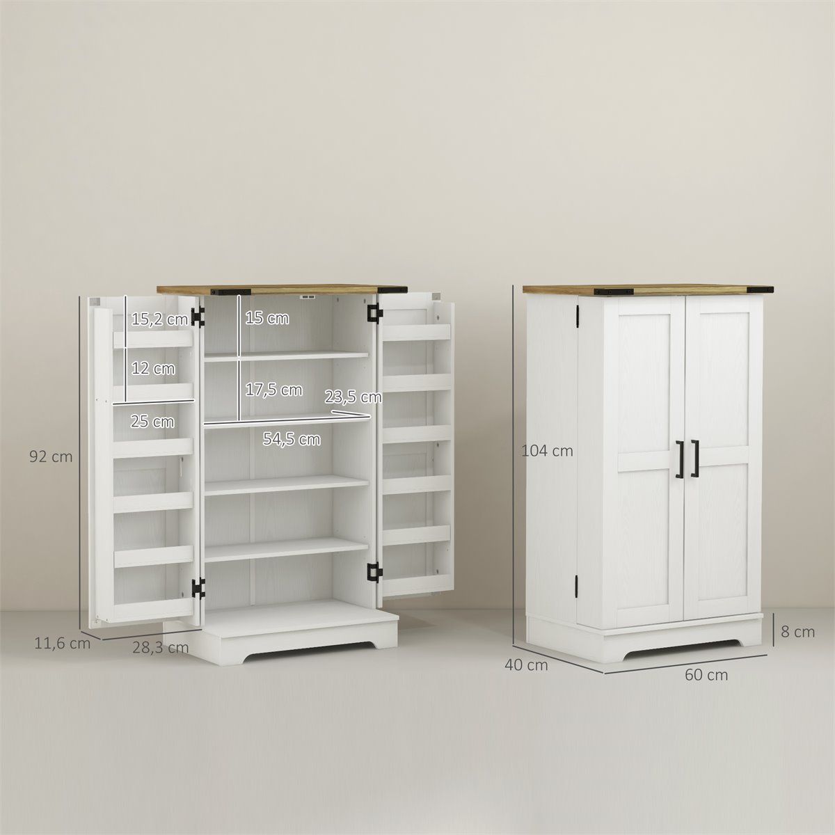 Este armario de cocina independiente de HOMCOM te ayuda a mantener todo en orden. Puedes guardar desde paquetes y tarros hasta condimentos y botellas. Su diseño con puertas dobles, estantes ajustables y estilo rústico hace que quede bien en cualquier rincón de tu casa.