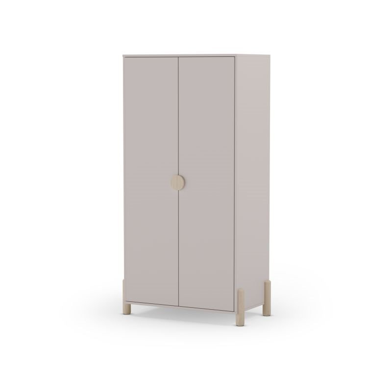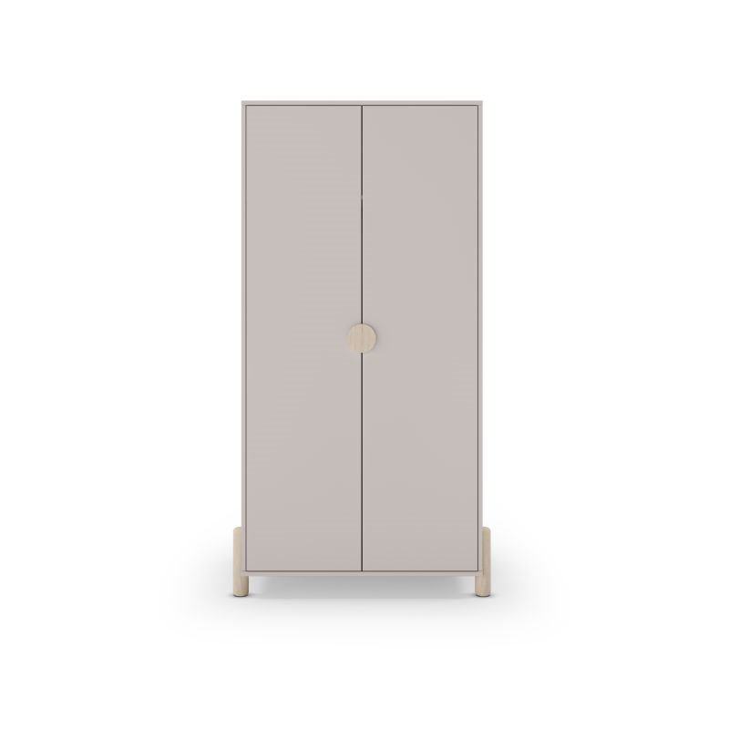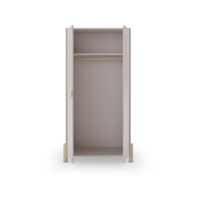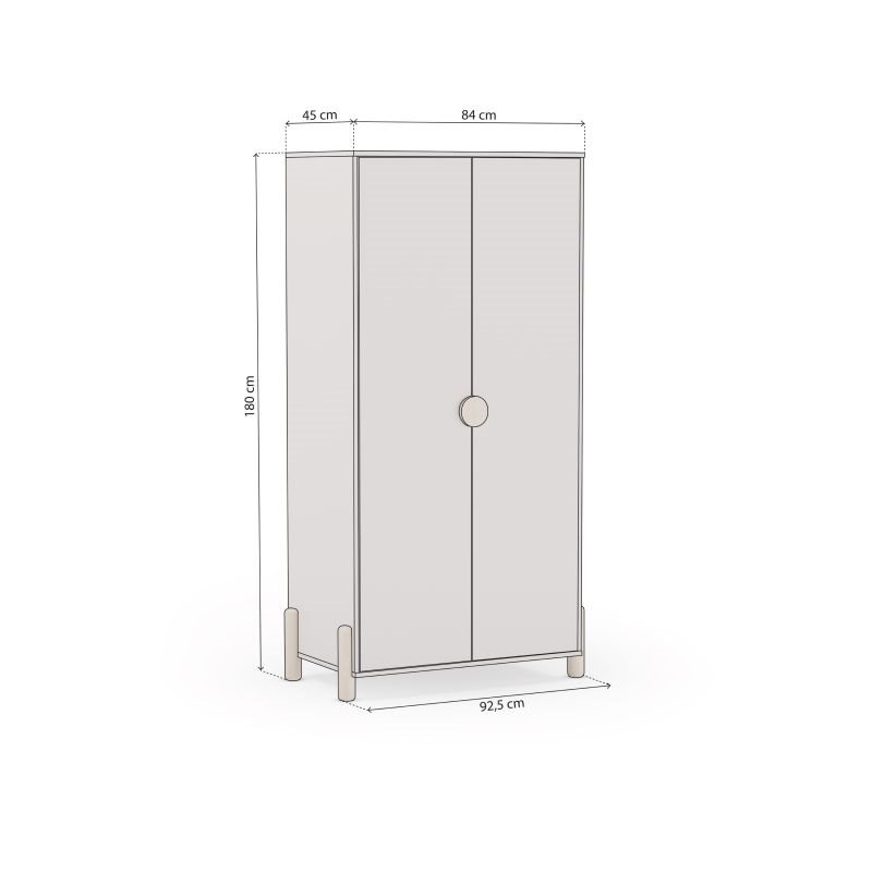 Este armario de dos puertas destaca por su estructura robusta y su cuidada fabricación, pensada para resistir el uso diario sin perder atractivo. Incluye una barra de colgar y un estante superior, permitiendo una distribución equilibrada entre prendas largas, ropa doblada o cajas organizadoras.