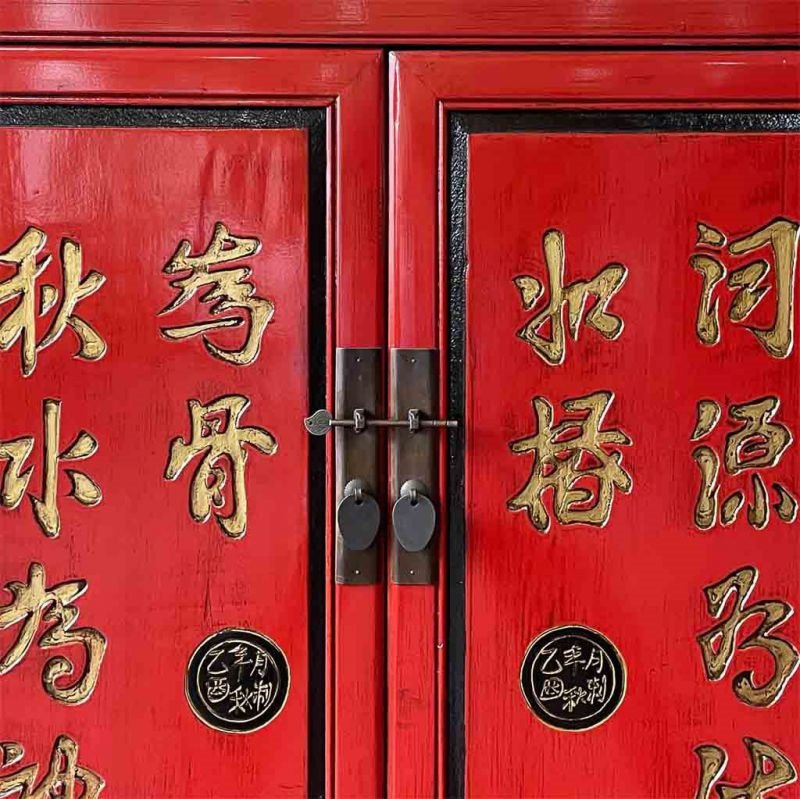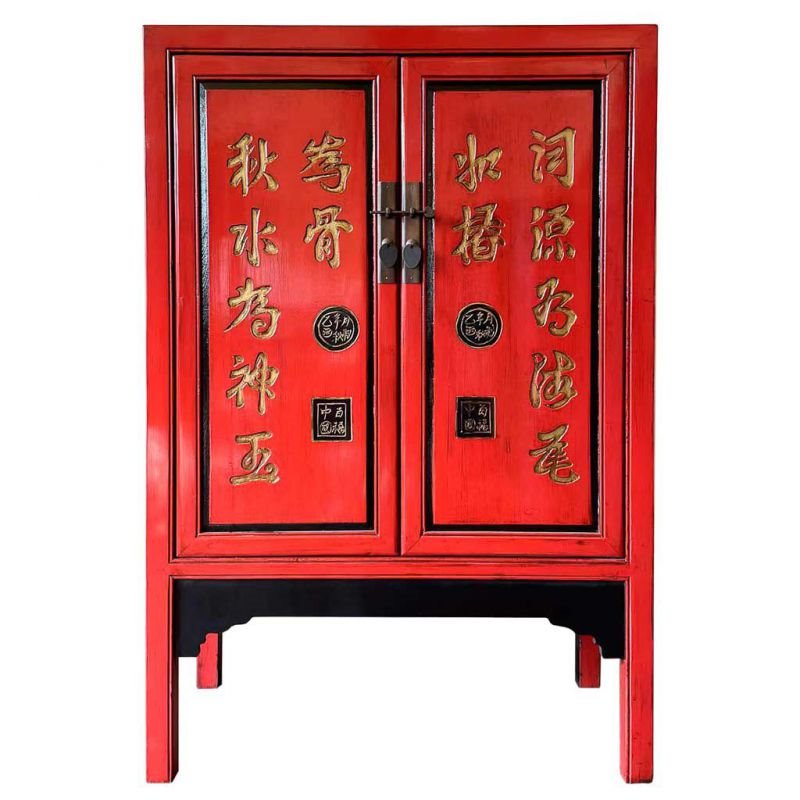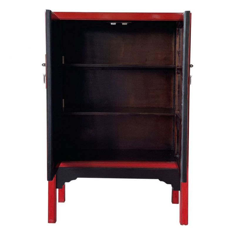 Impactante y práctico armario de almacenamiento fabricado en madera con un atrevido acabado en color rojo. Con unas dimensiones de 100 cm de ancho, 40 cm de fondo (profundidad) y 150 cm de alto, ofrece una excelente capacidad de almacenaje vertical.