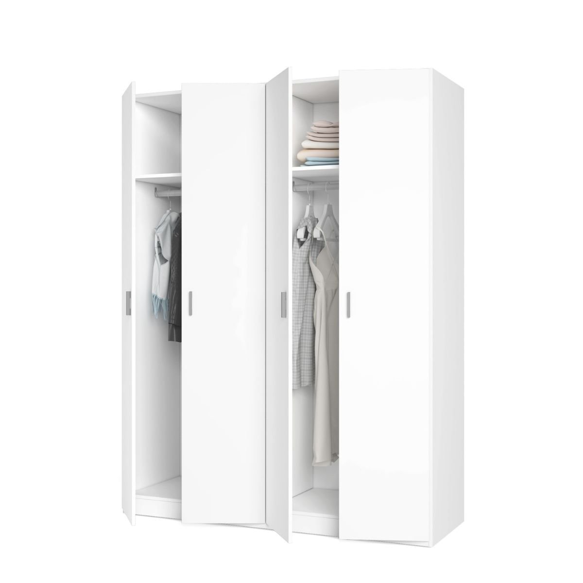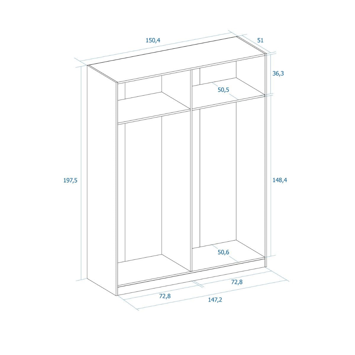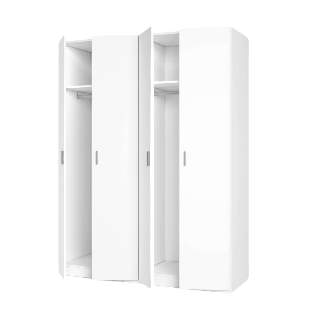 Impresionante armario modelo River con 4 puertas, perfecto para olvidarte de los problemas de espacio en casa y mantener tus prendas siempre organizadas. Su diseño práctico y funcional lo convierte en una solución ideal para dormitorios de cualquier estilo. El interior está distribuido en 4 compartimentos amplios que te permitirán tener toda tu ropa y accesorios bien ordenados y siempre a mano. Dispone de dos zonas centrales muy espaciosas, cada una equipada con una barra resistente para colgar prendas largas o cortas, como camisas, vestidos o abrigos. En la parte inferior de cada módulo, encontrarás espacio suficiente para colocar cajas, cestas o zapatos, lo que facilita mantener el suelo despejado y aprovechar al máximo la capacidad del armario. Además, incorpora dos altillos de gran capacidad, situados en la parte superior, ideales para guardar todo aquello que no necesitas con frecuencia, como ropa de otra temporada, mantas, edredones o maletas. Así, podrás mantener tu dormitorio más despejado sin renunciar a tener todo bien guardado.