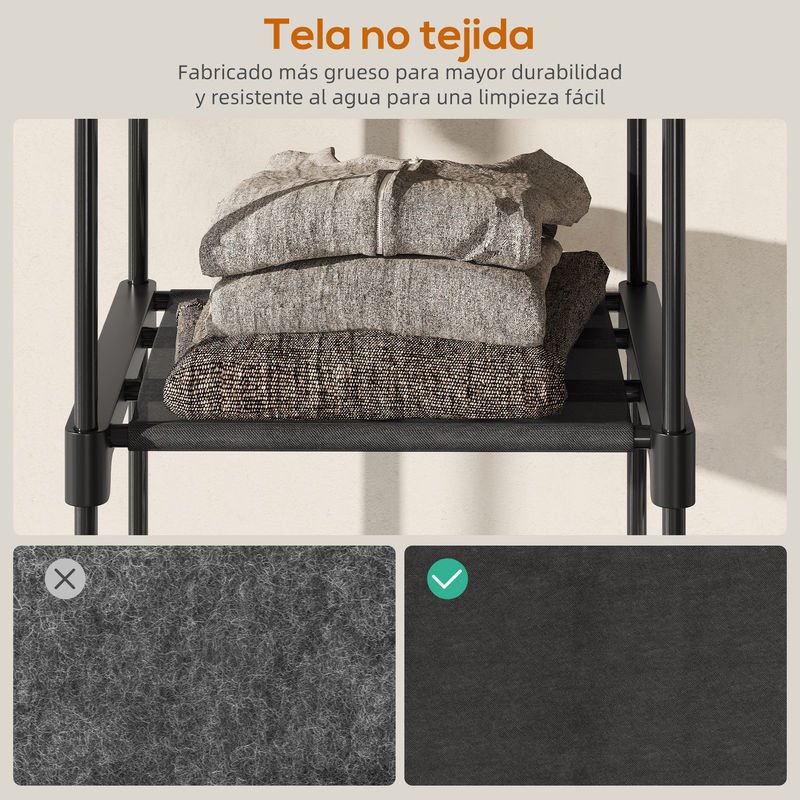- Incluye secciones variadas para ropa corta y larga, ofreciendo espacio dedicado a cada tipo de prenda