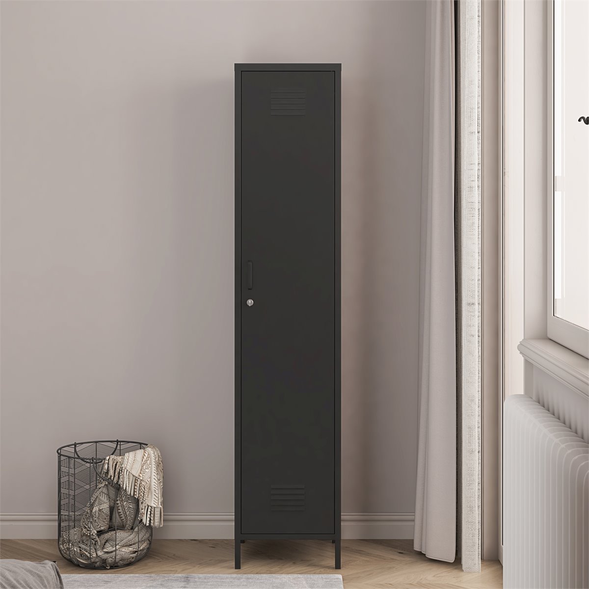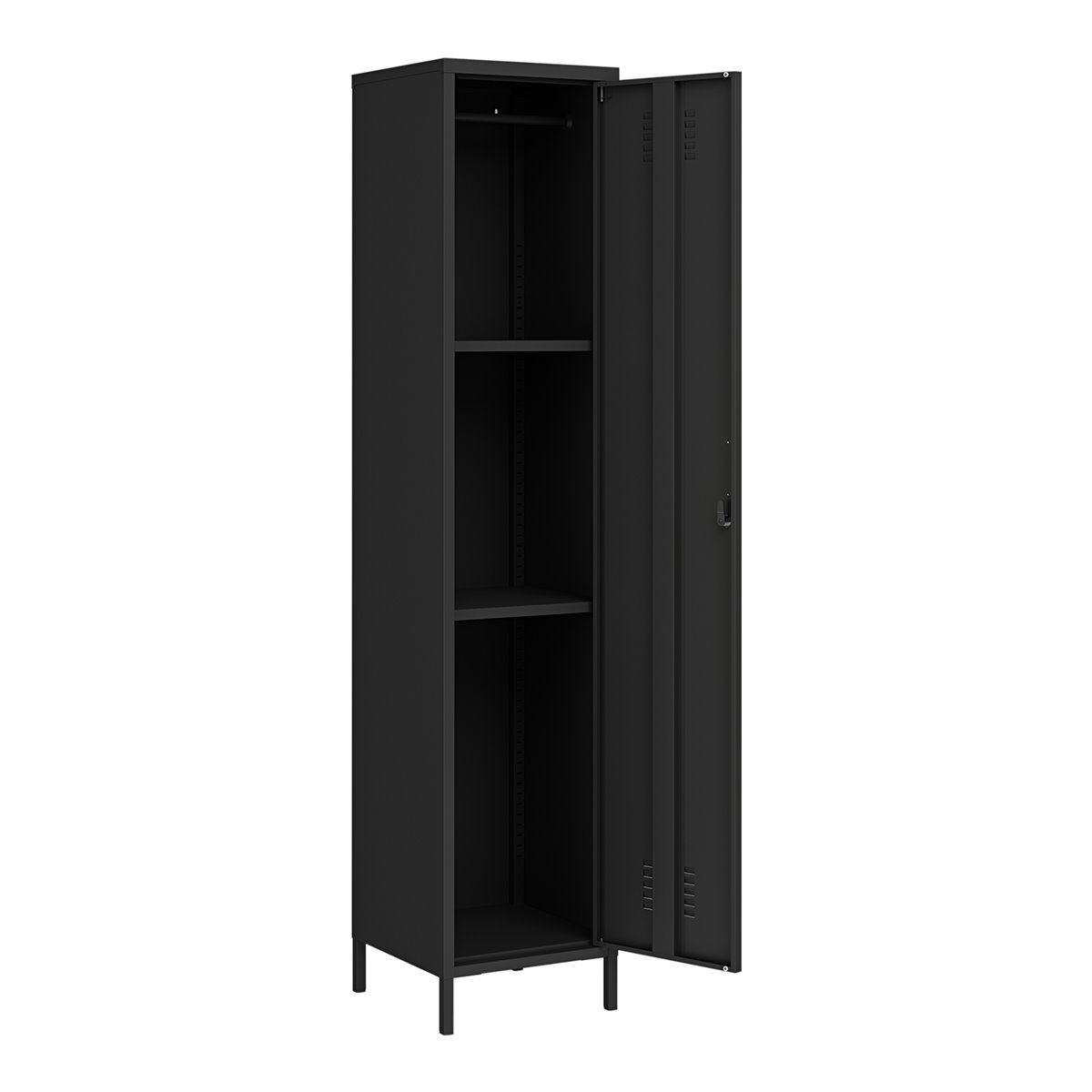 Su diseño moderno y robusto lo convierte en una pieza funcional allá donde lo coloques. Con una puerta equipada con cerradura y ranuras de ventilación, tus pertenencias estarán seguras y bien aireadas, manteniéndose frescas y en perfecto estado.