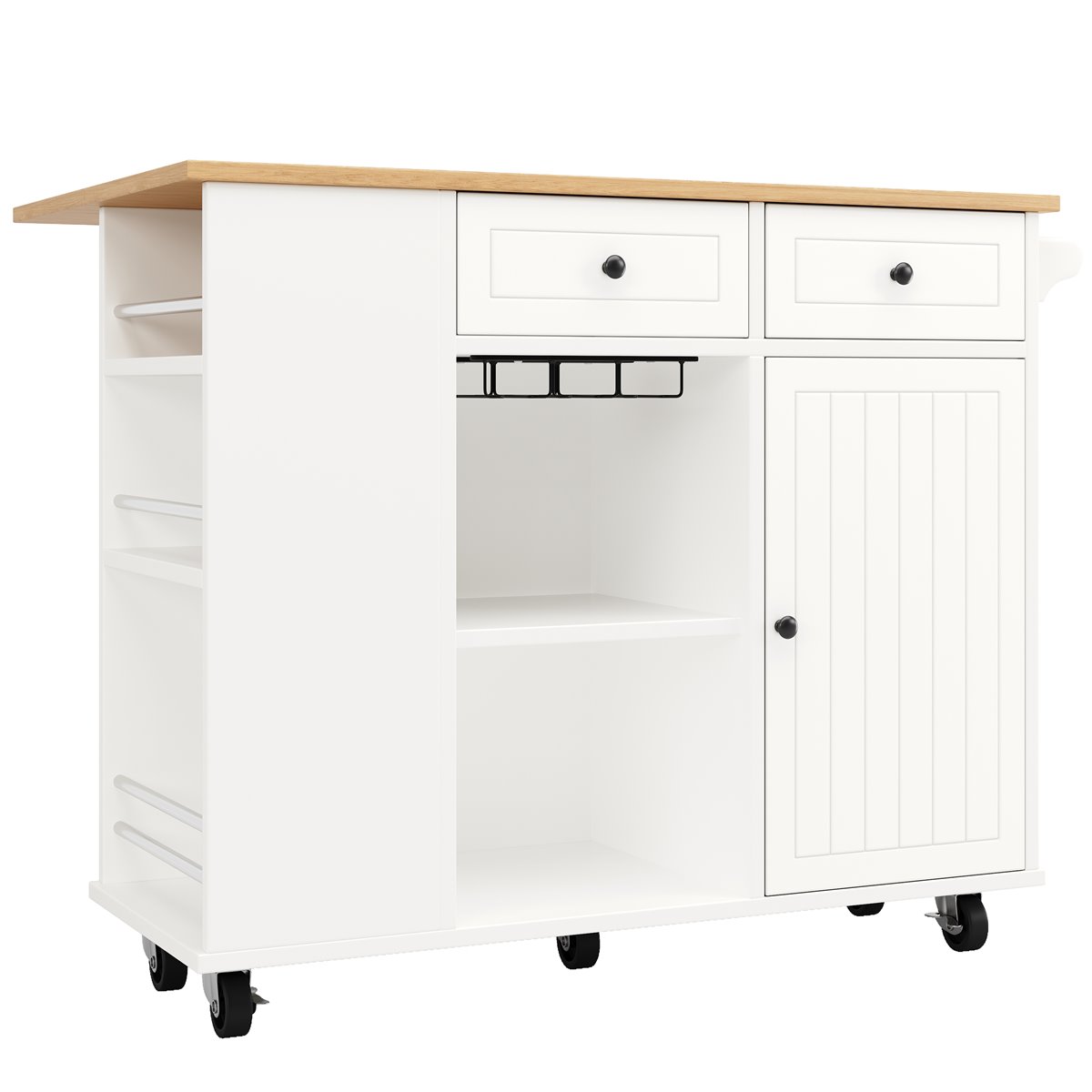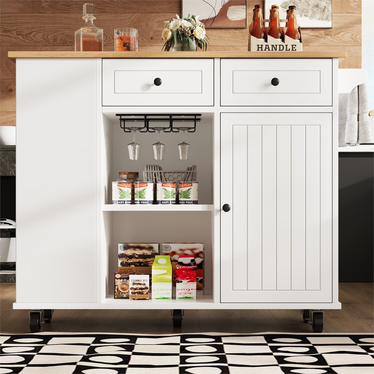 - Isla de cocina multifuncional con superficie de trabajo y almacenamiento versátil.