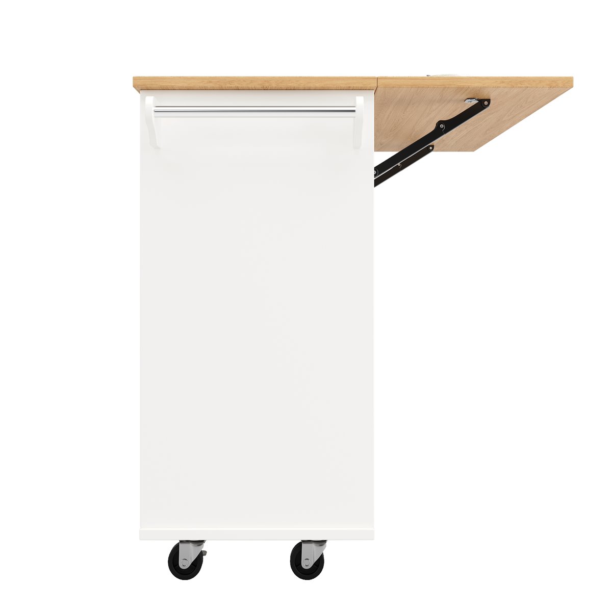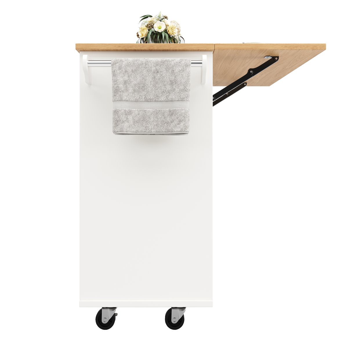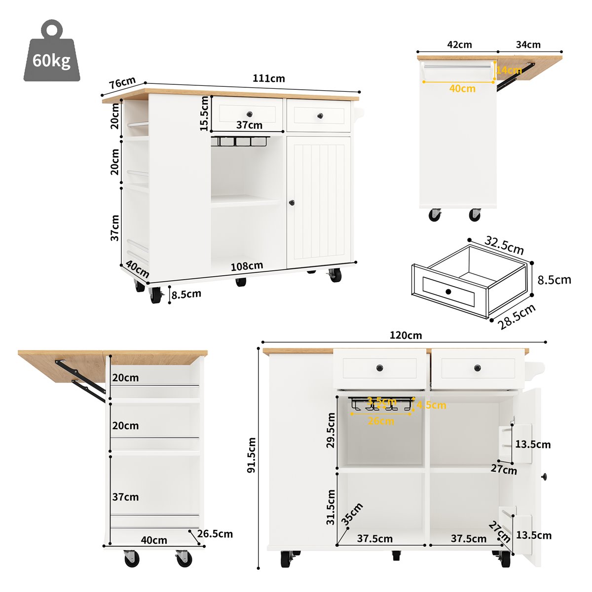 - Diseño práctico: Incluye un soporte para copas de vino, un estante para bocadillos en la puerta del armario y una superficie de trabajo con acabado de madera de alta calidad.