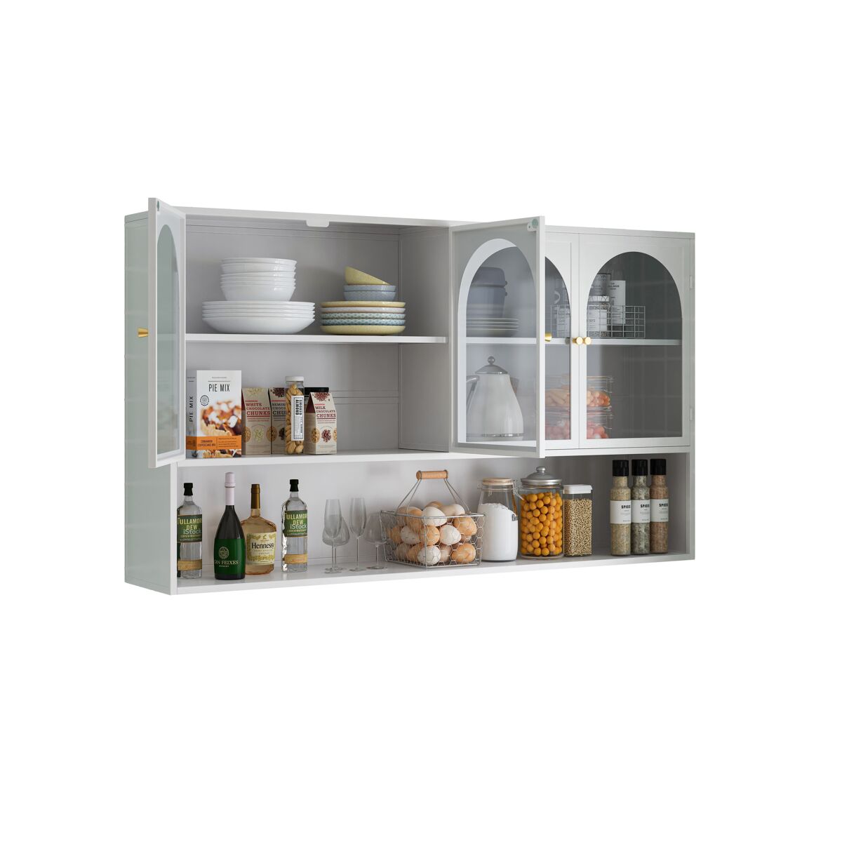 - Armario de pared de 120CM con cuatro puertas de vidrio, ideal para cocina, salón o baño.