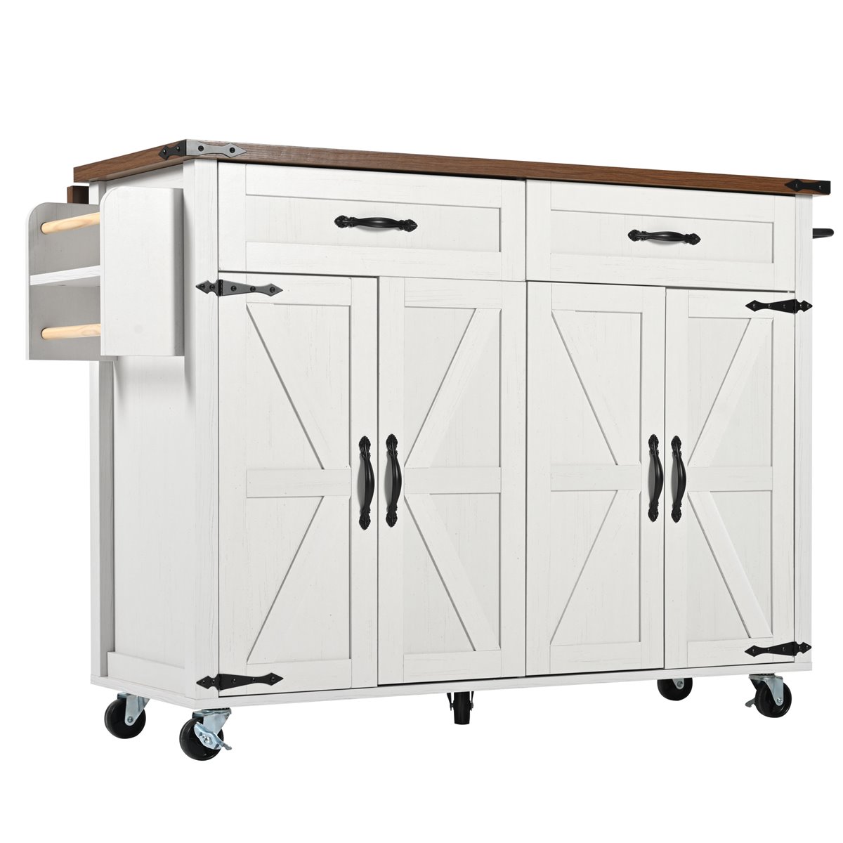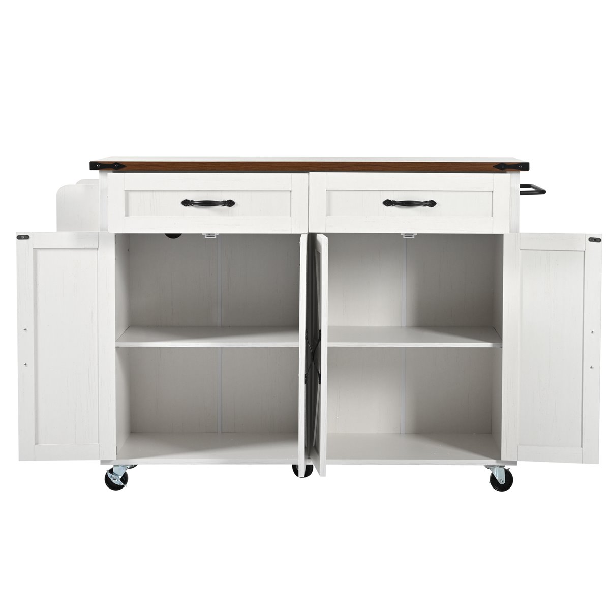 - El carrito también incluye un soporte para toallas y estantes para almacenar especias, bebidas y otros artículos.
