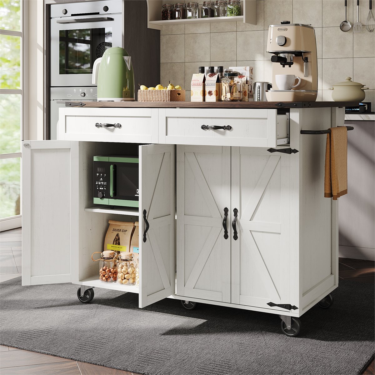 - Con dos cajones y dos armarios con puertas, este carrito ofrece una amplia capacidad de almacenamiento para utensilios de cocina.