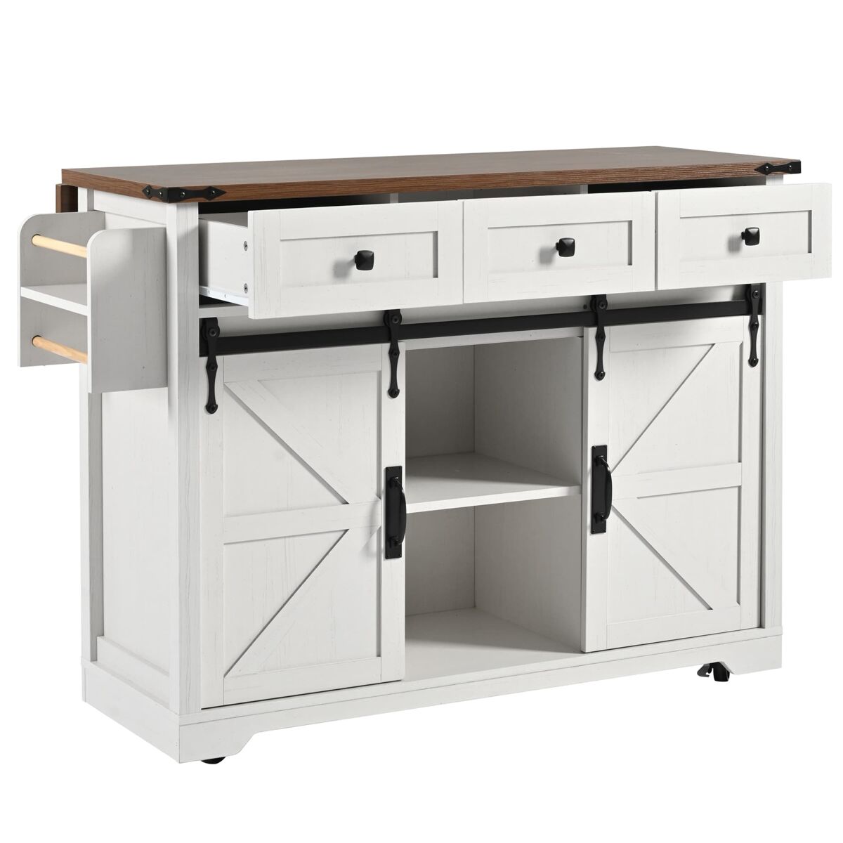 - Equipado con tres cajones y dos puertas correderas, ofreciendo amplio espacio de almacenamiento.