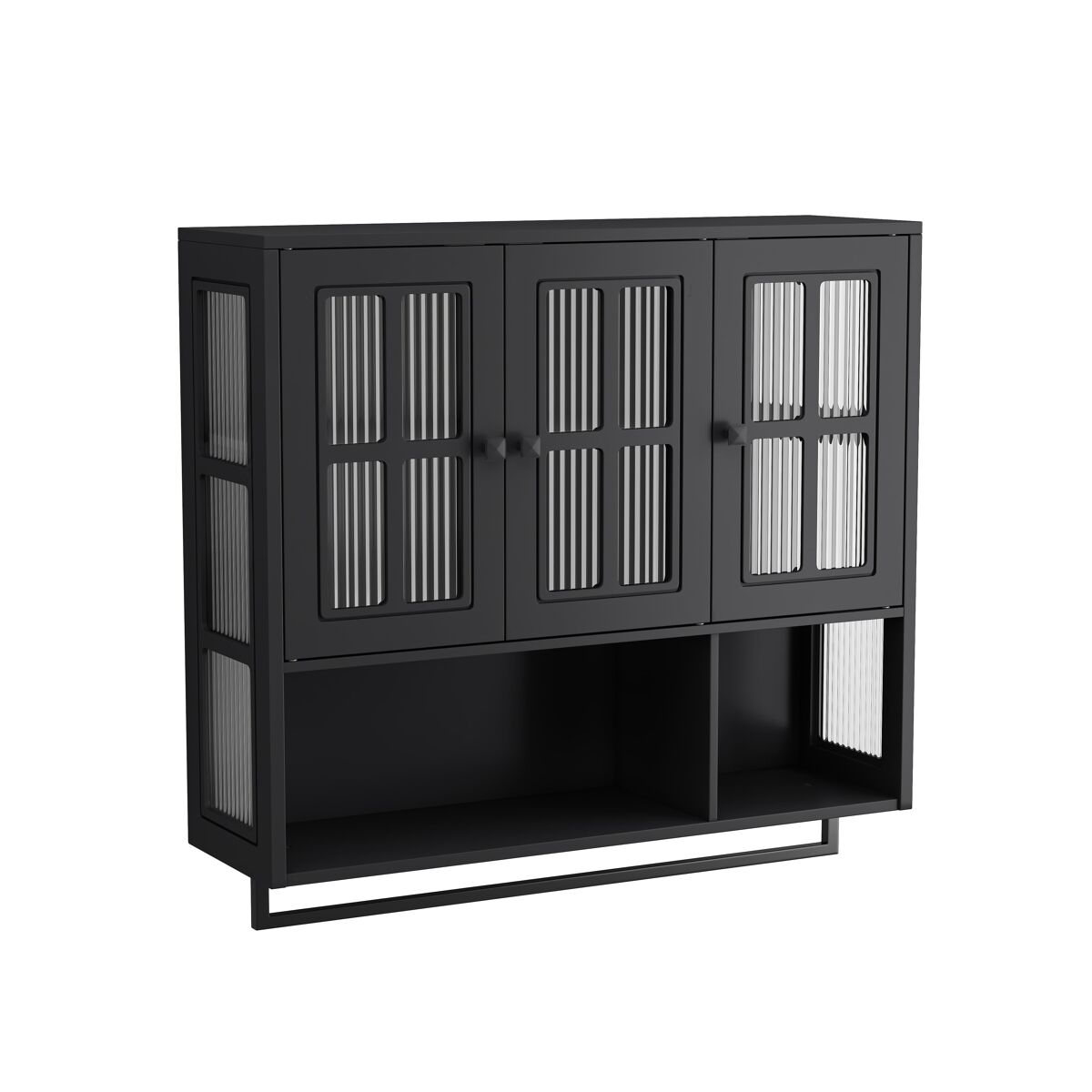 - Armario de pared para baño de 3 puertas, con espacio abierto y cerrado para almacenamiento, ideal para entrada, salón, comedor o baño.