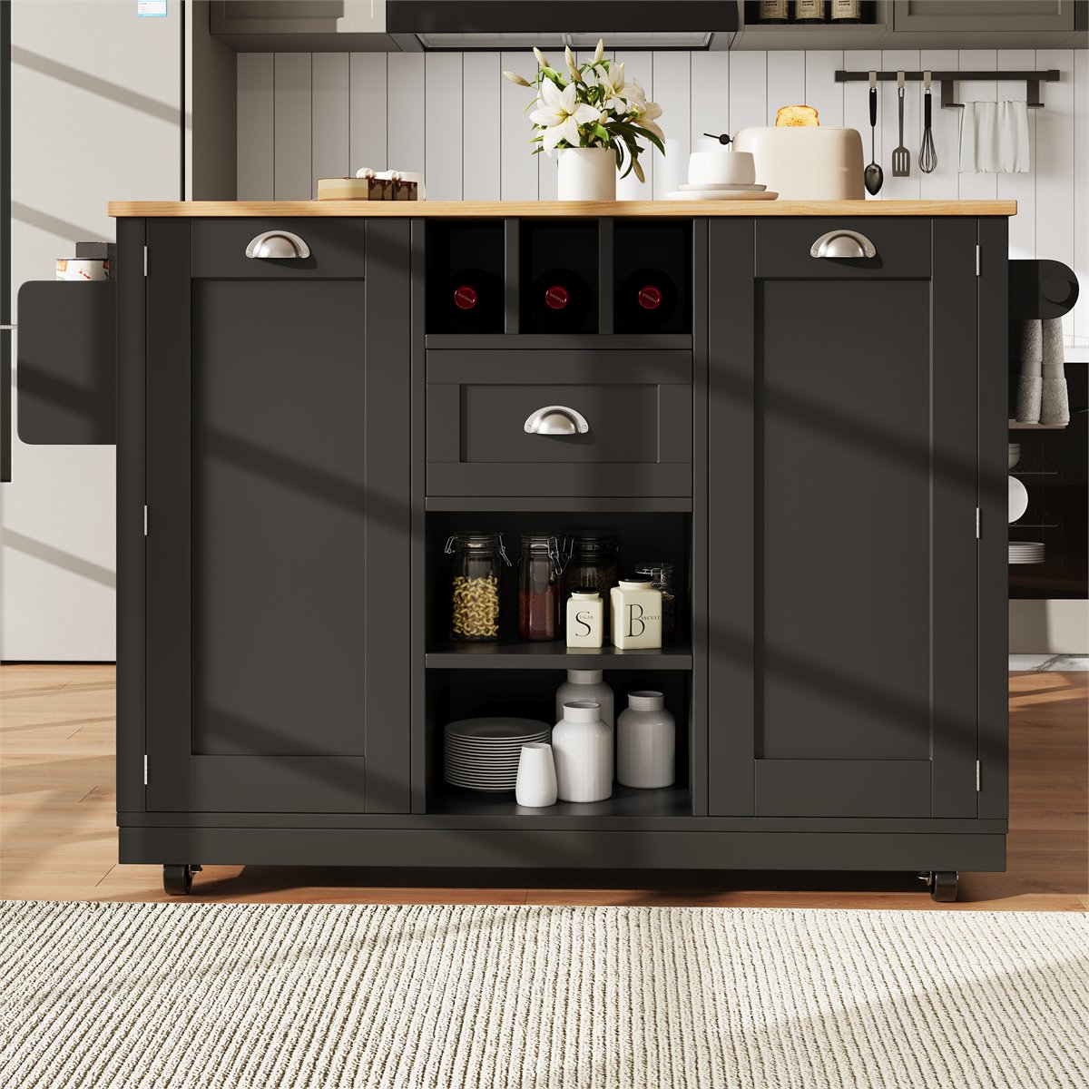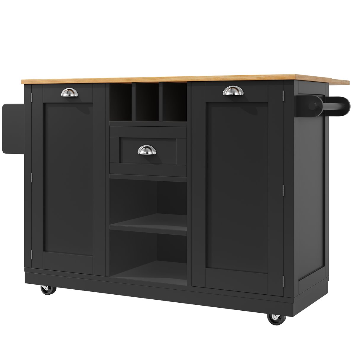 - El carrito de cocina es fácil de mover gracias a sus 5 ruedas giratorias, 2 de ellas con freno para mayor estabilidad.