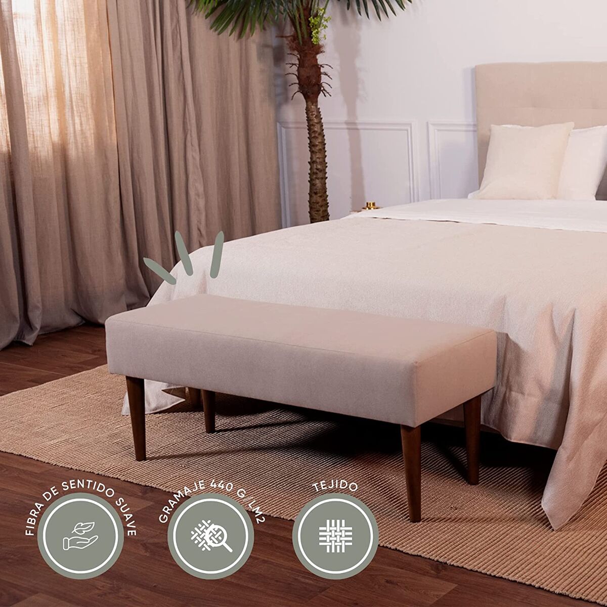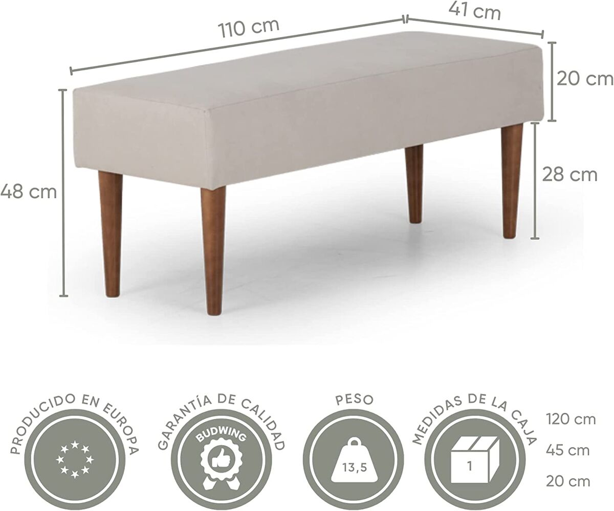 Presentamos el banco con patas Paloma BUDWING, un elegante mueble perfecto para cualquier dormitorio o pasillo. Este banco junto a la cama es ideal para organizar su pasillo y proporcionar una solución de asiento adicional en su espacio interior. Hecho de material de madera de alta calidad, este banco junto a la cama con patas se pliega como una sola chaise longue, para que pueda moverlo fácilmente por sus áreas de estar. El banco Paloma también funciona como otomana, banco de anfitriona y vitrina para un espacio más pequeño, lo que facilita agregar asientos adicionales donde los necesite. Esta pieza no solo se ve genial gracias a su tapicería, sino que también es un artículo funcional fantástico para complementar con almohadas o mantas para mayor comodidad. Cree espacio adicional para sentarse y relajarse con el reposapiés BUDWING Paloma: ¡pida el suyo hoy mismo!