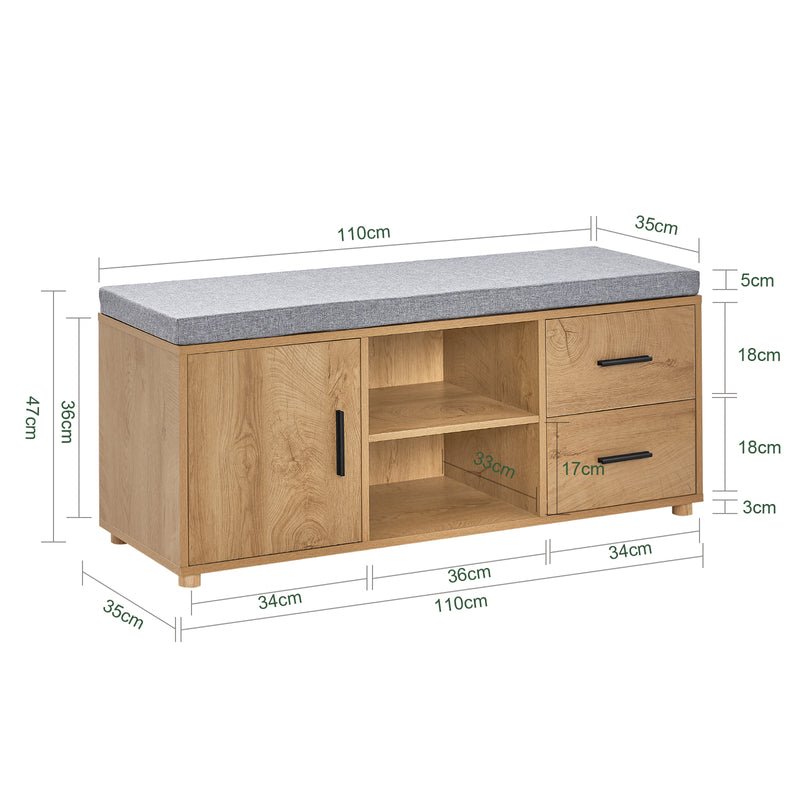 Material: Fabricado en PB(E1), cojín de lino y esponja. Es muy desagradable vacilar al apoyarte contra la pared antes de salir a ponerte los zapatos. Gracias a este banco con cojín, toma tu tiempo para sentarte cómodamente y atarte los zapatos sin esfuerzo. Los cojines están rellenos de una suave esponja para ofrecerle una experiencia de asiento confortable.