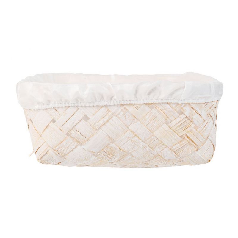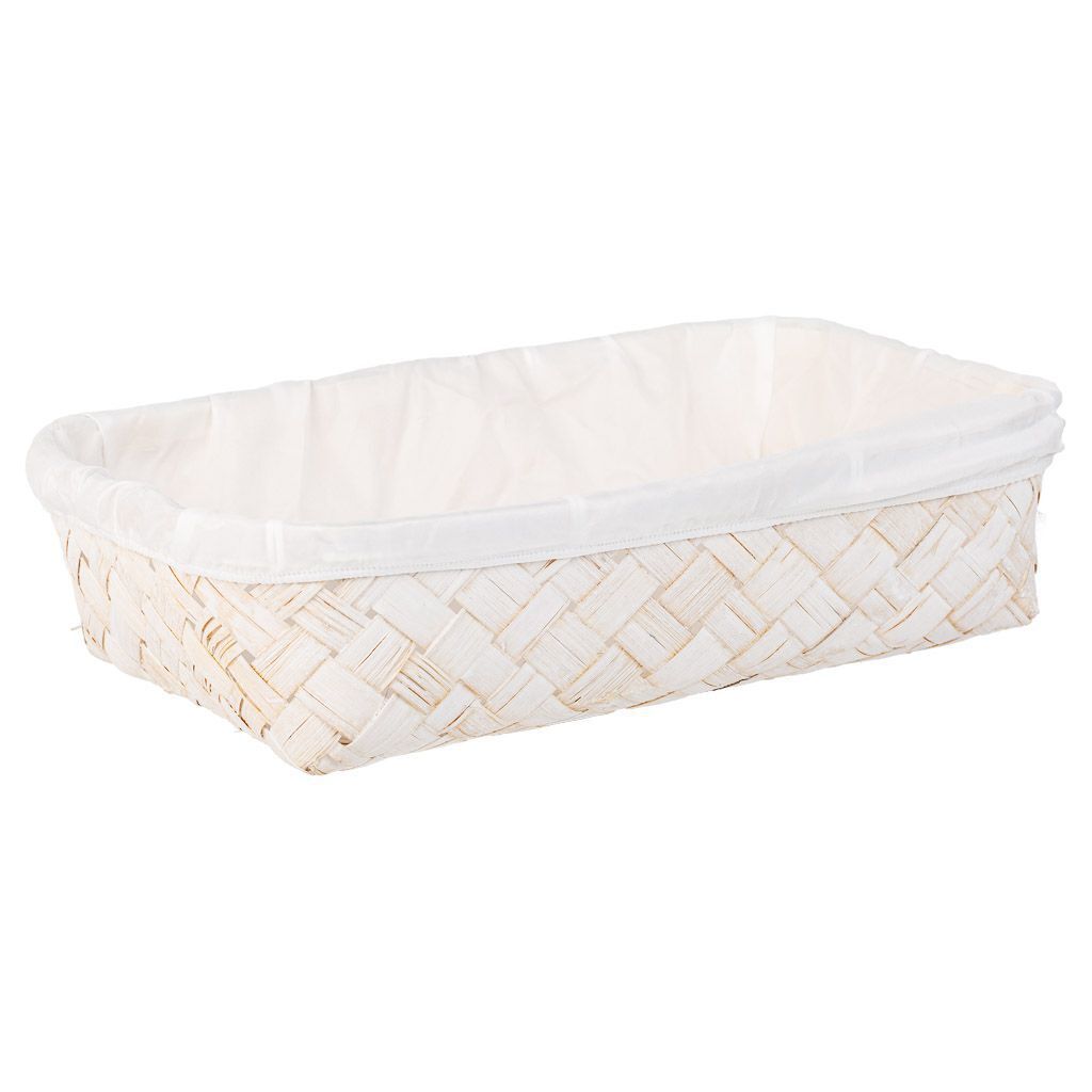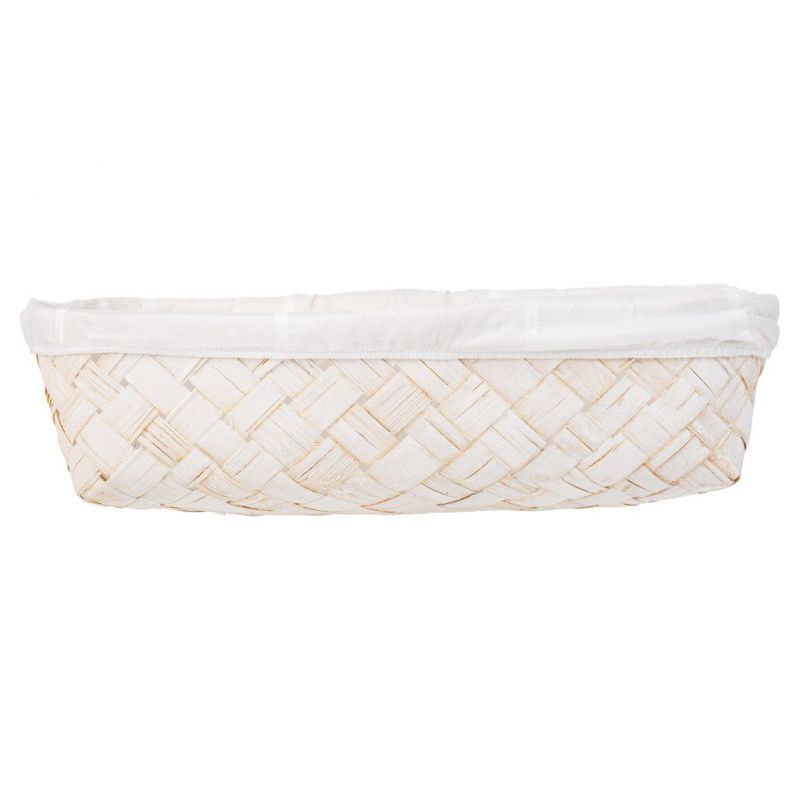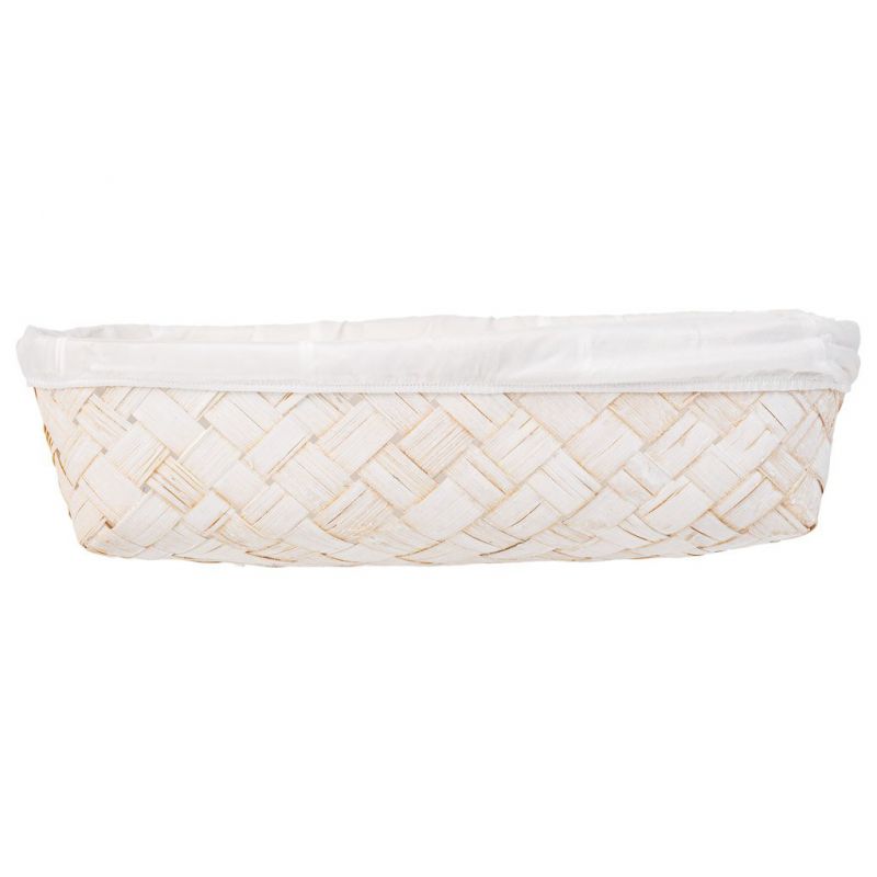 Esta bandeja de bambú blanca presenta un forro blanco que aporta una sensación de frescura. Con dimensiones de 36 centímetros de ancho, 24 centímetros de largo y 8 centímetros de altura, es ideal para servir pequeñas delicias o como pieza decorativa.