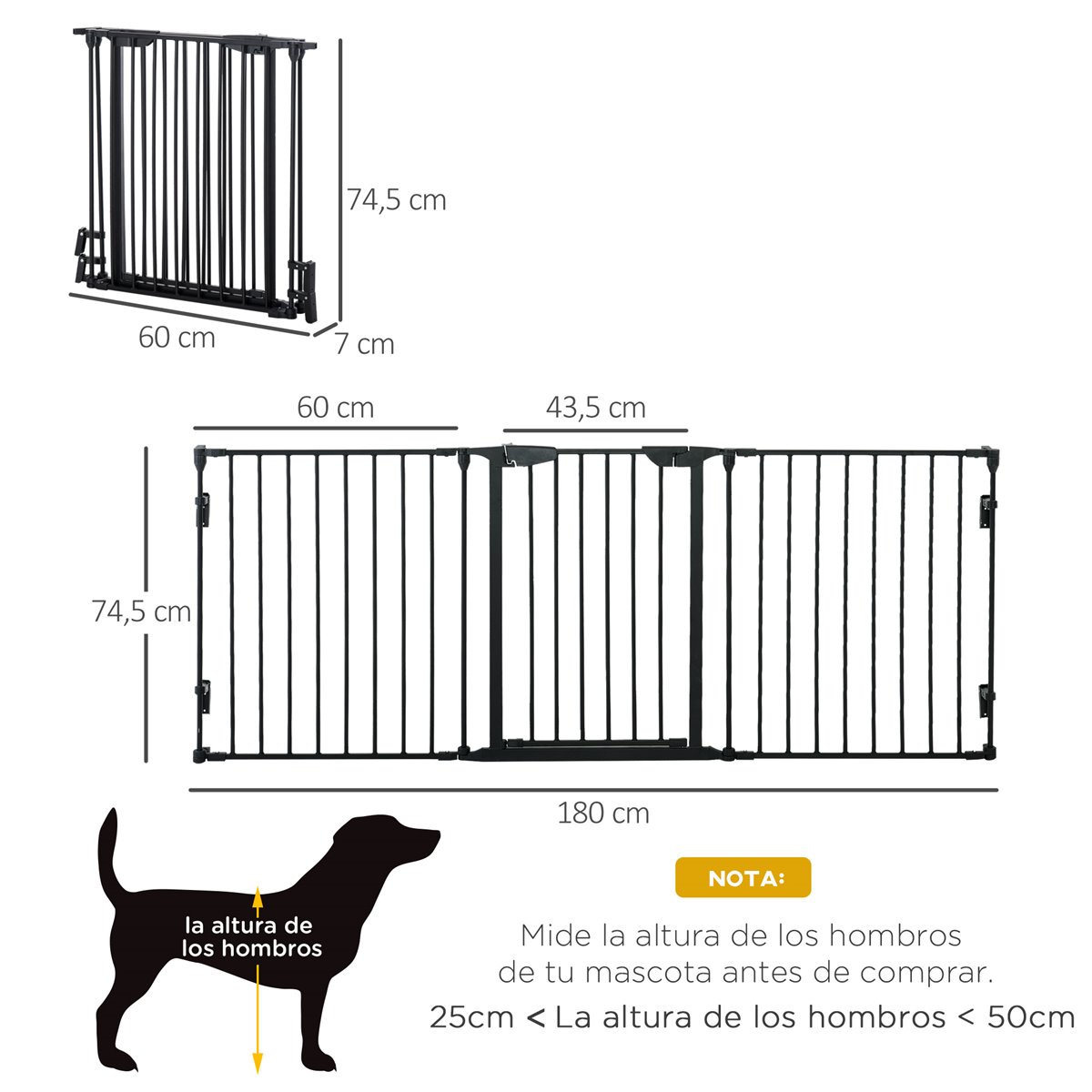 - Ancho de la puerta: 43,5 cm